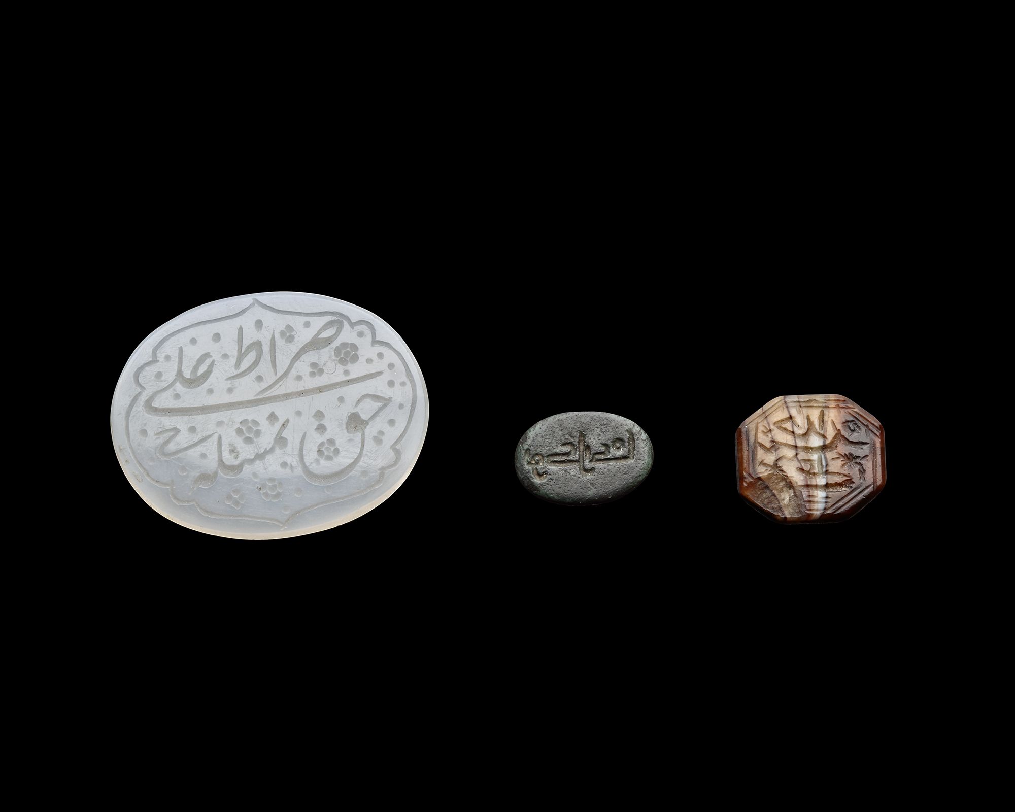 A Qajar agate seal of rounded form, opaque black in colour, engraved in kufic script, 10 cm.