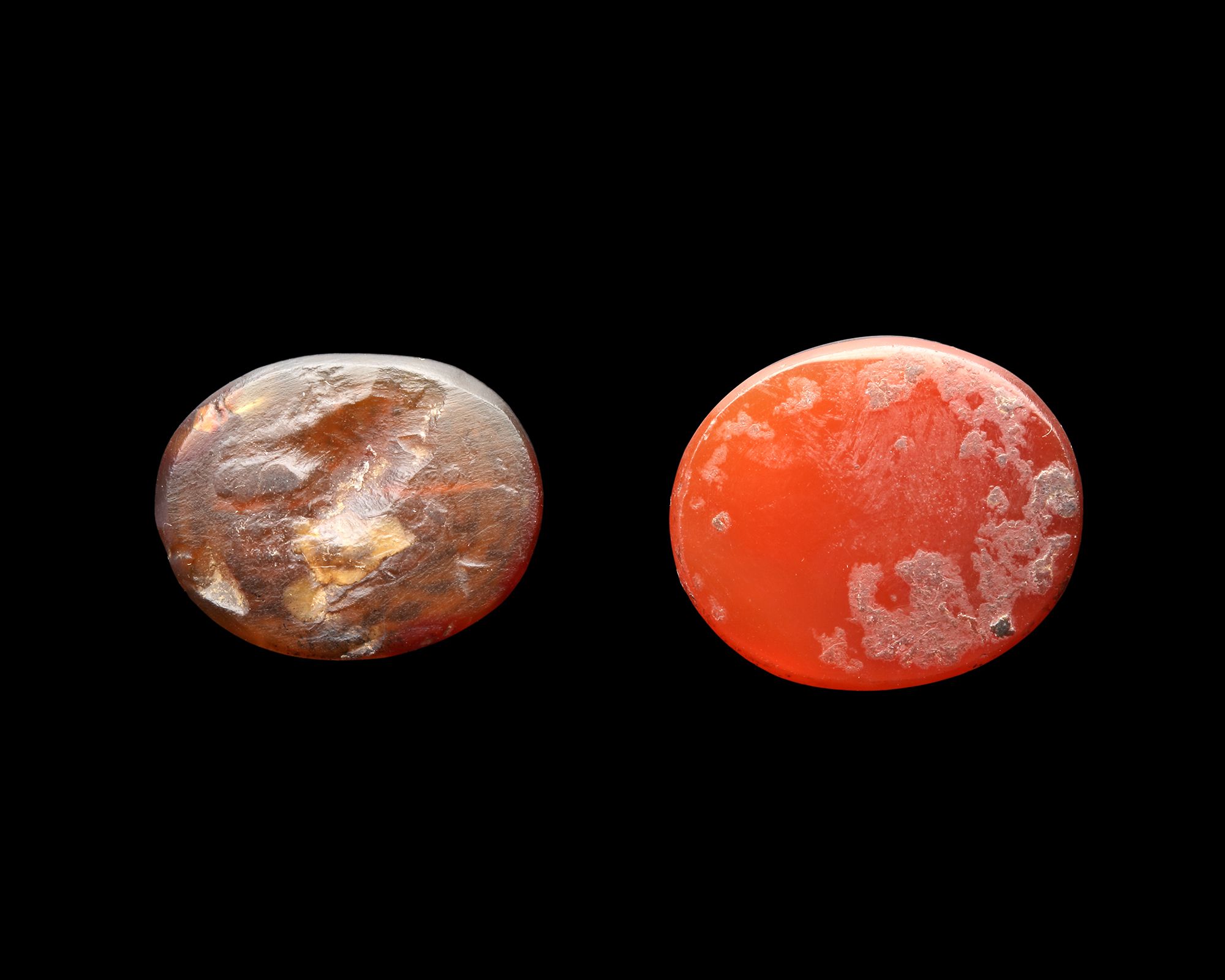 A Qajar agate seal of rounded form, light brown in colour, engraved in nastaliq script with " ايتكلي حاج عبد الله, Itekli Hajj Abdullah", 20.2 cm., dated 1210AH/ 1795 AD.