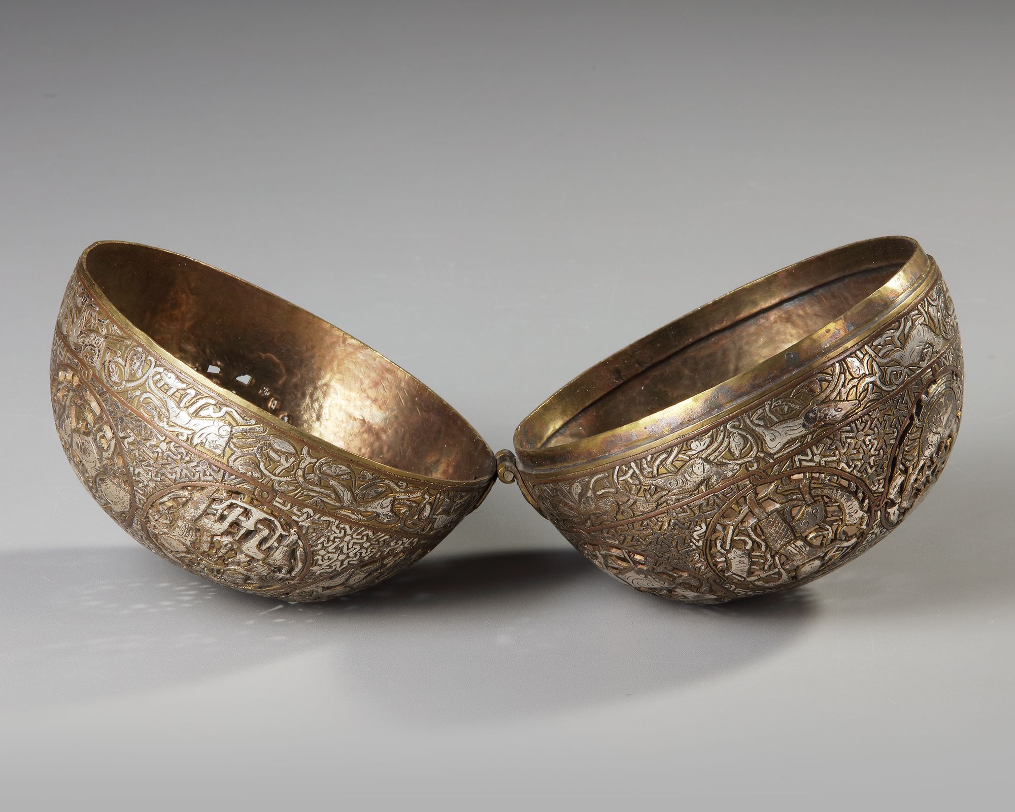 Lot 135A MAMLUK REVIVAL SILVER INLAID SPHERICAL BRASS CENSER, 19TH CENTURY