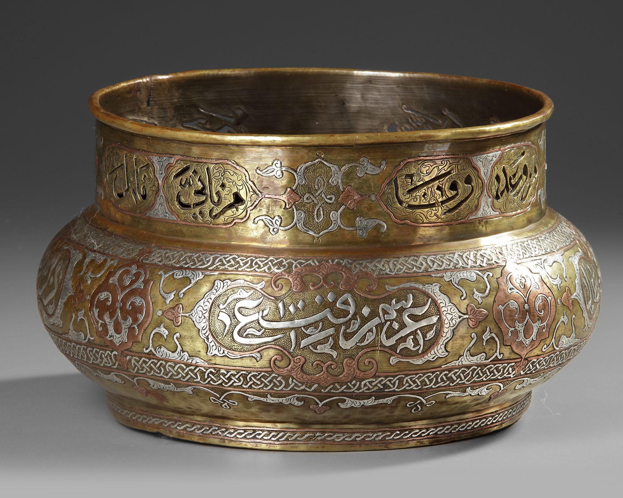 A CAIROWARE SILVER AND COPPER INLAID BRASS BOWL, EGYPT OR SYRIA, EARLY 20TH CENTURY