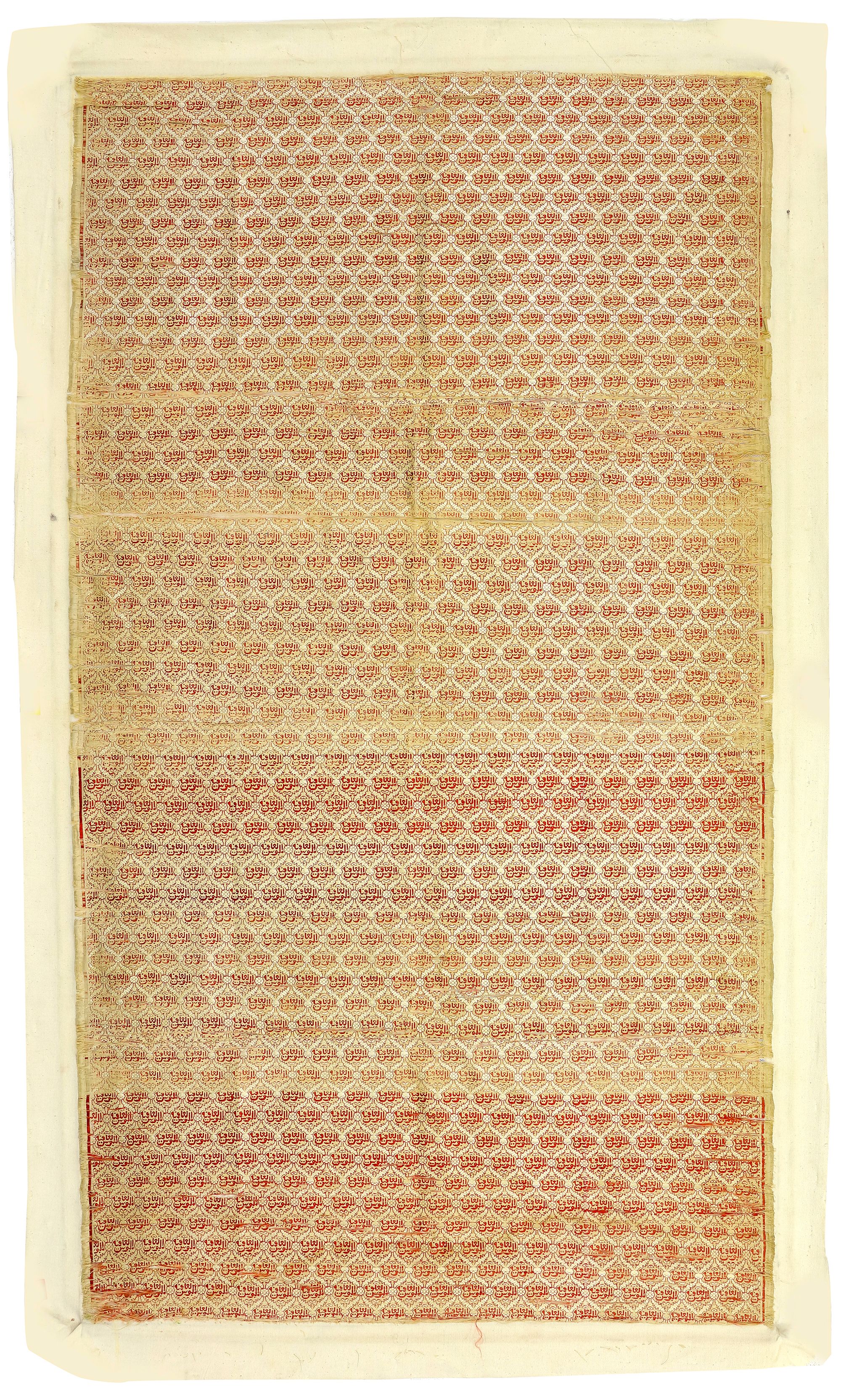 CATALOGUE NOTE The inscriptions are a repetition of 'Malbus Aleafia'. ملبوس العافية 138 by 75 cm.