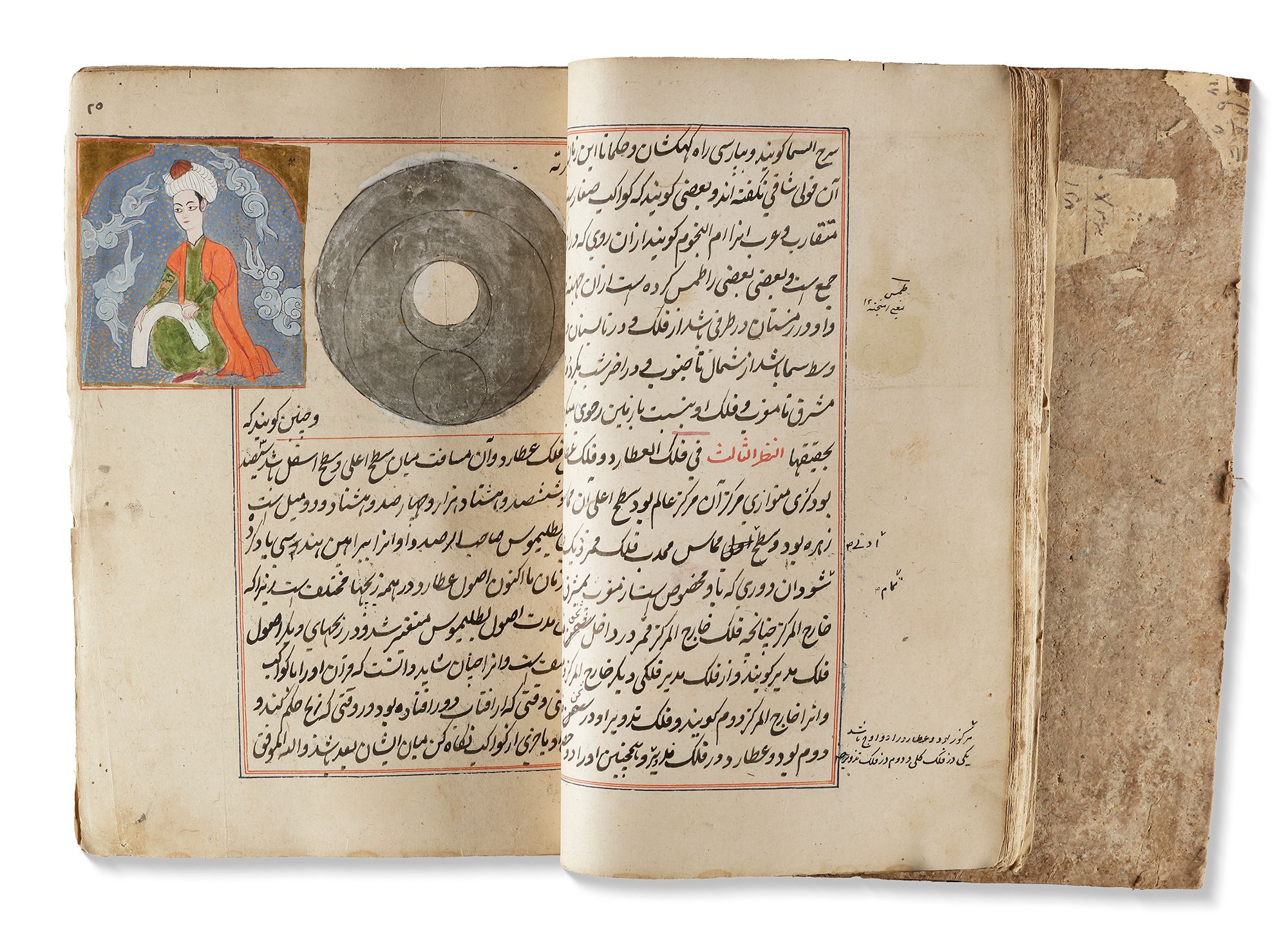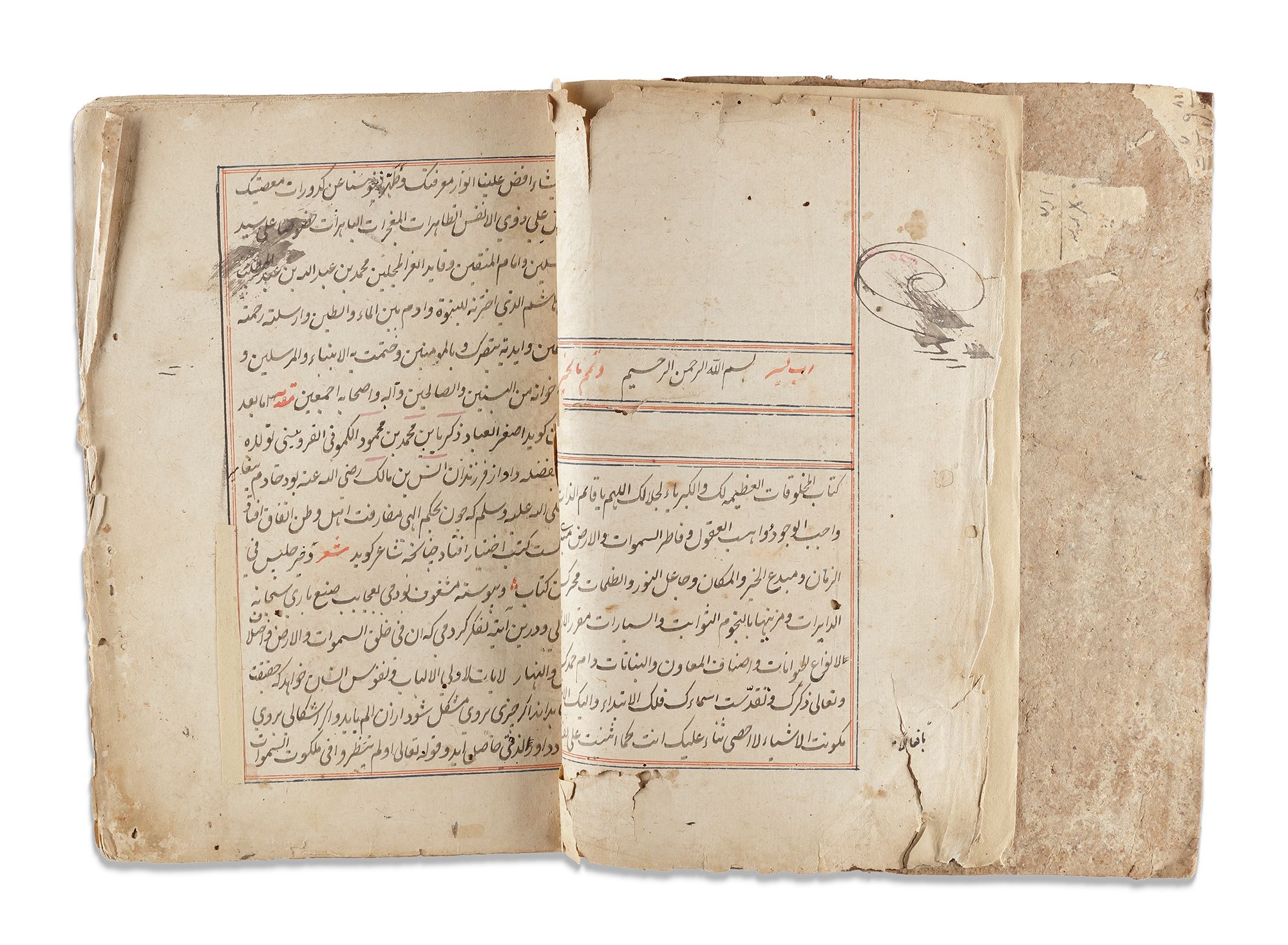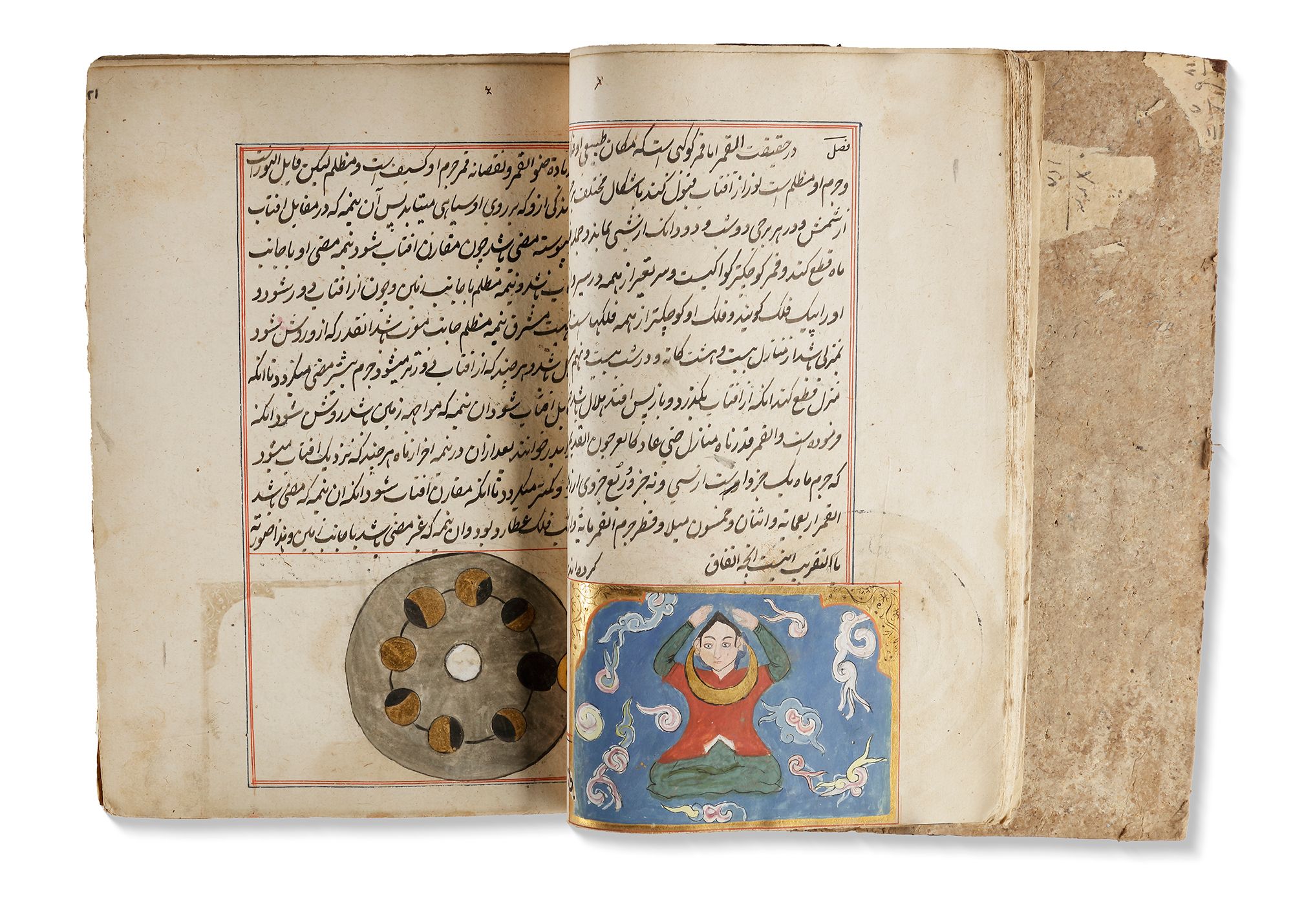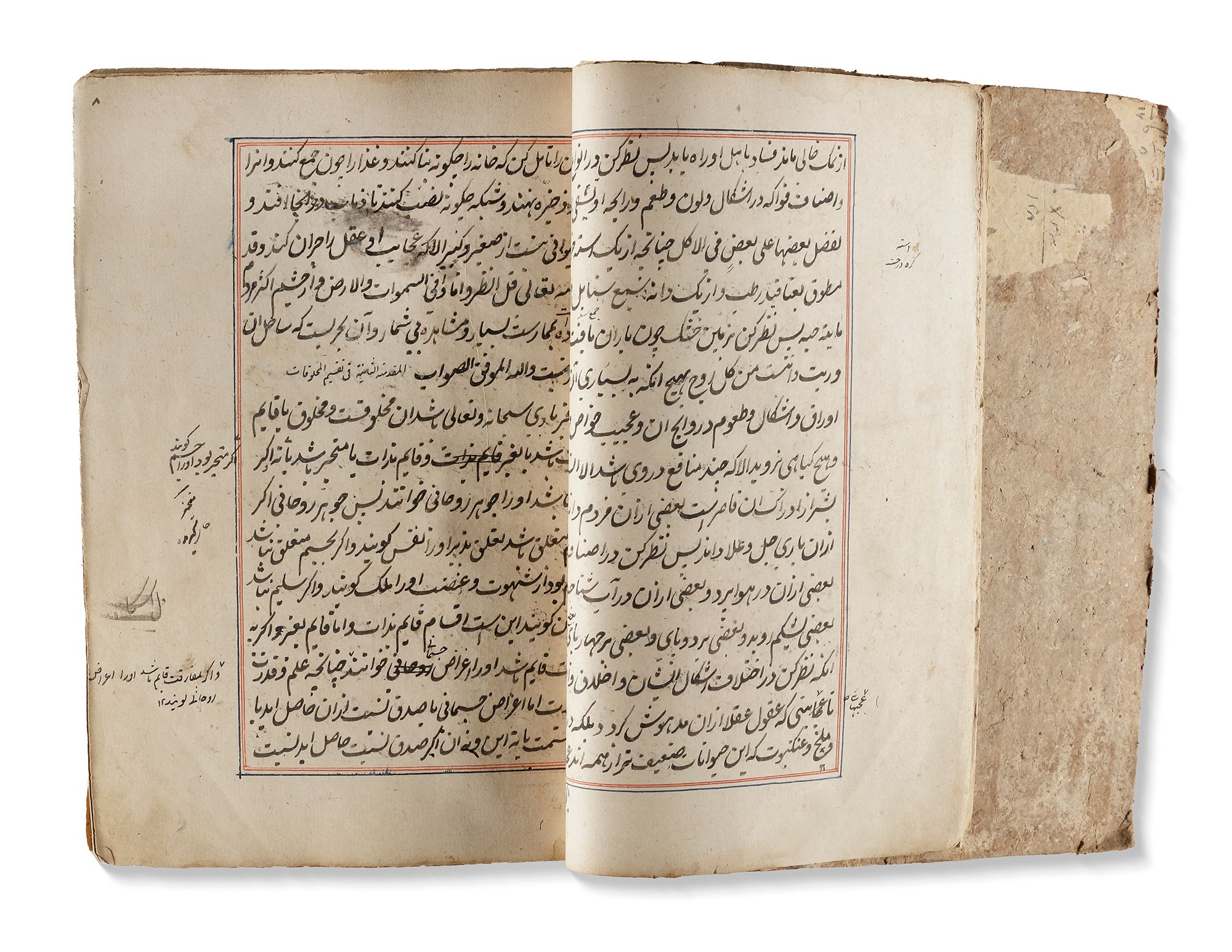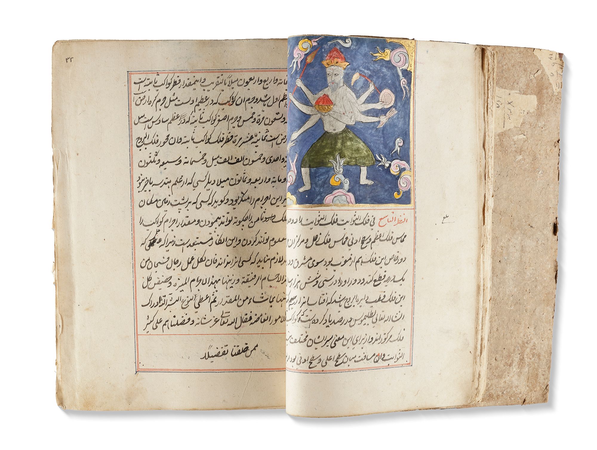 Persian manuscript on paper, 454 ff. with 15ll. to each page written in black ink, titles and catchwords in red ink, throughout the book many illustrations of the discussed creatures in gouache colours heightened with gilt, the text ruled in red and blue ink. In deep red leather binding.