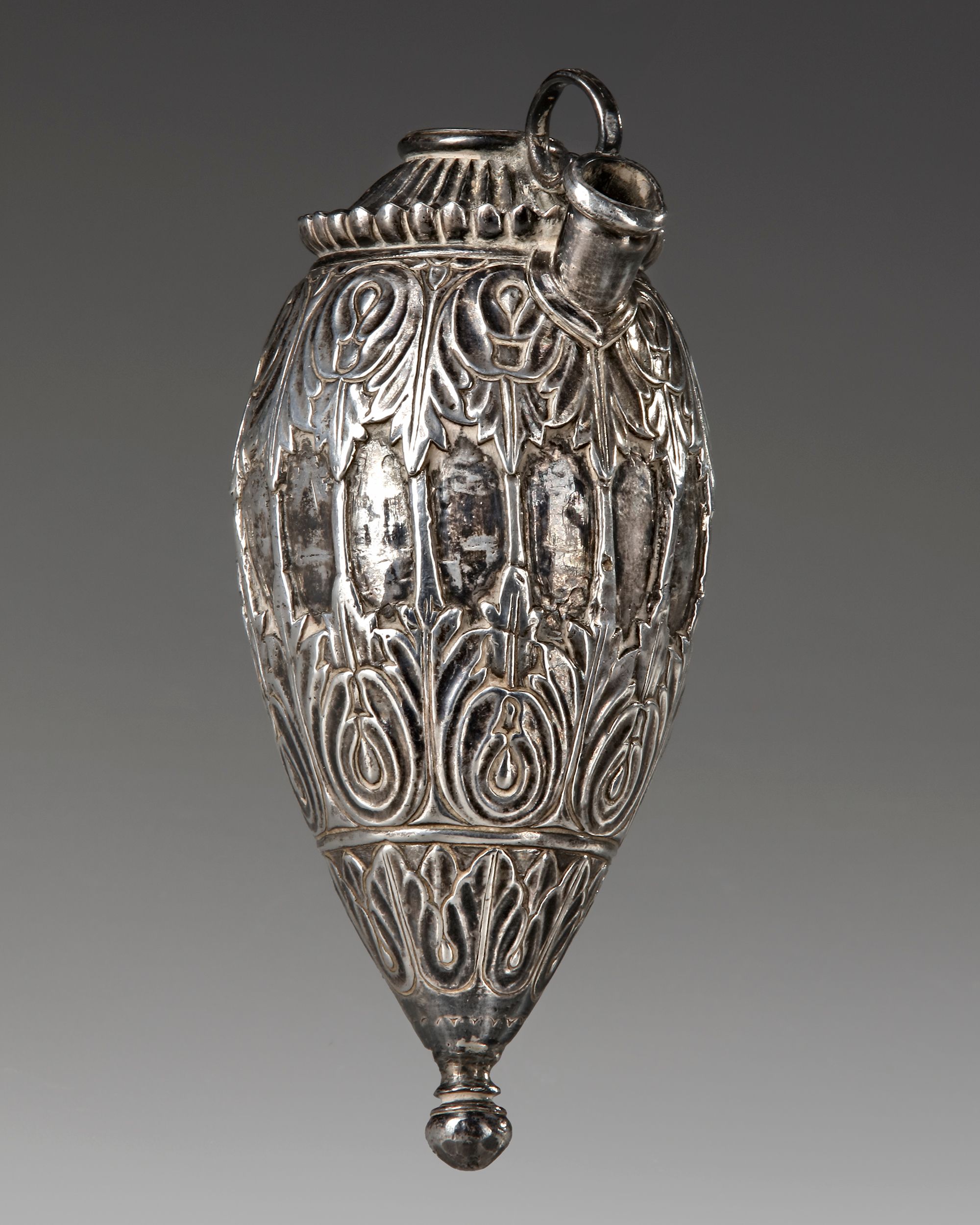 Of accentuated inverted drop-shape with pointed lower terminal. Length 12 cm. 237 gr.