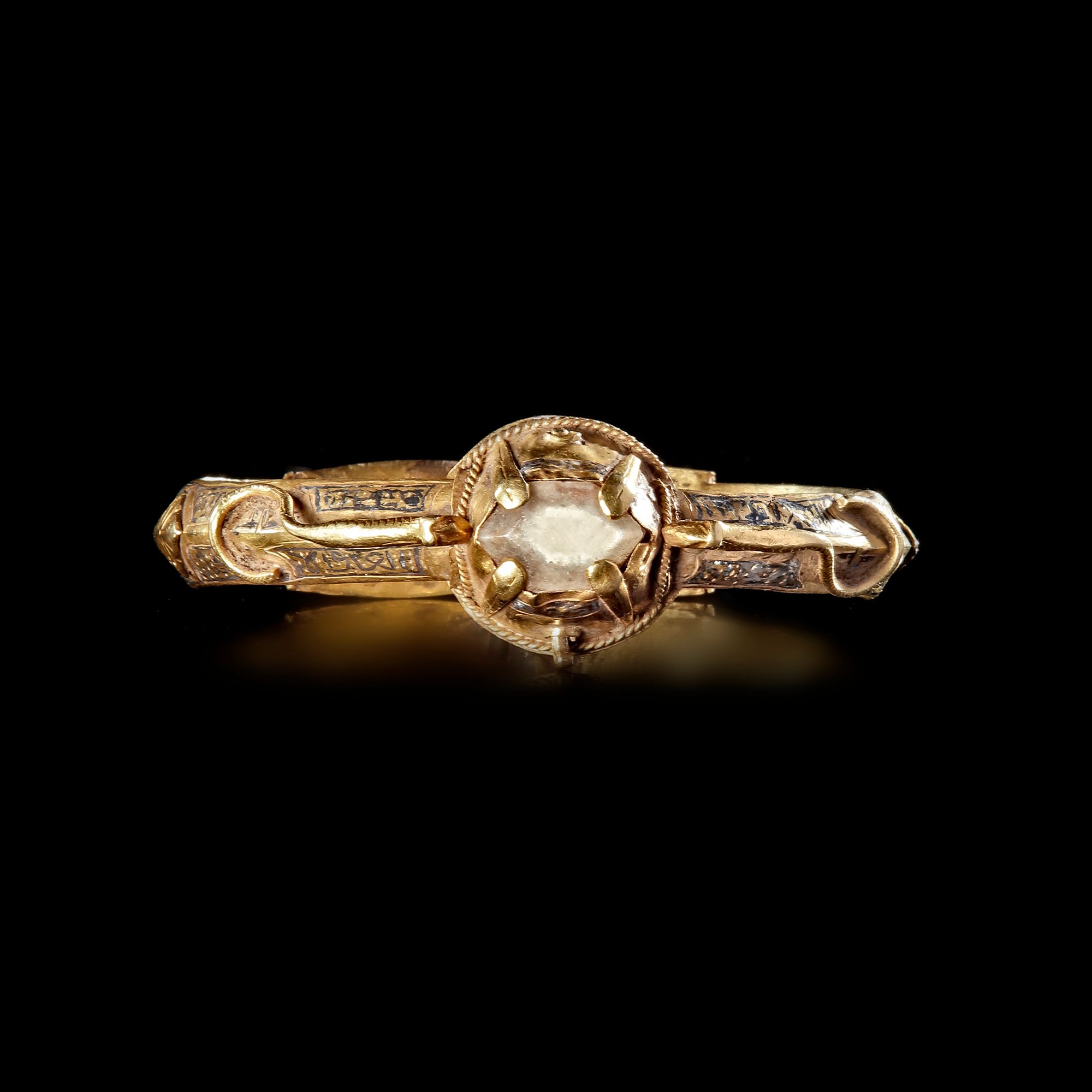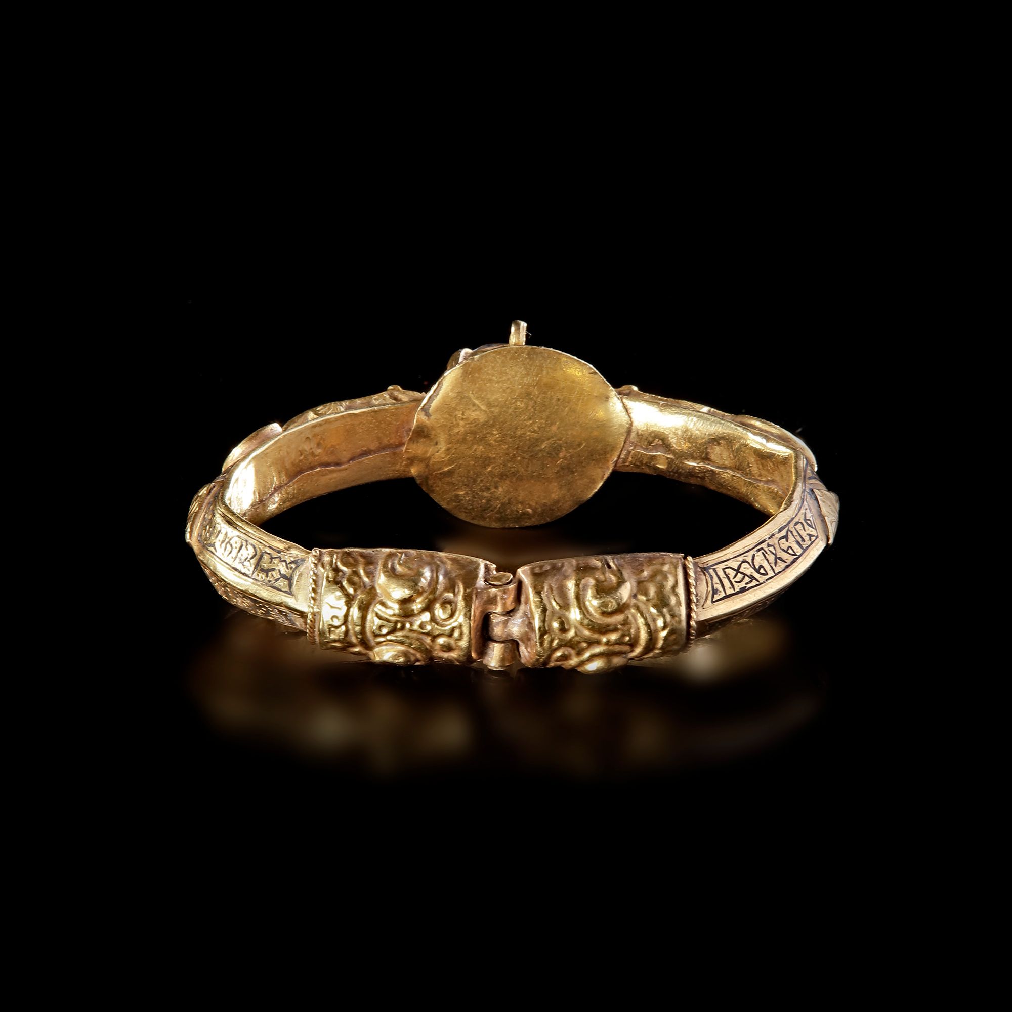 A fine Seljuk niello gold gem-set bangle Persia, 12th Century.