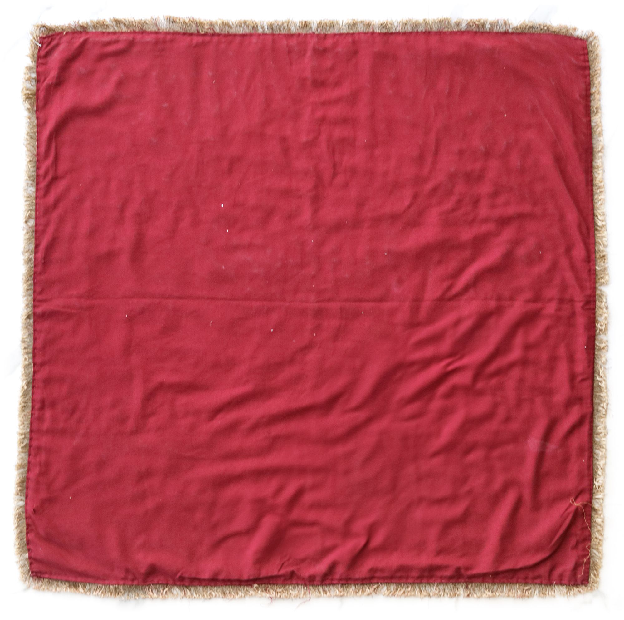Of square form, embroidered in gilt threads on a deep red velvet ground with a central floral roundel surrounded by flower branches and foliage.