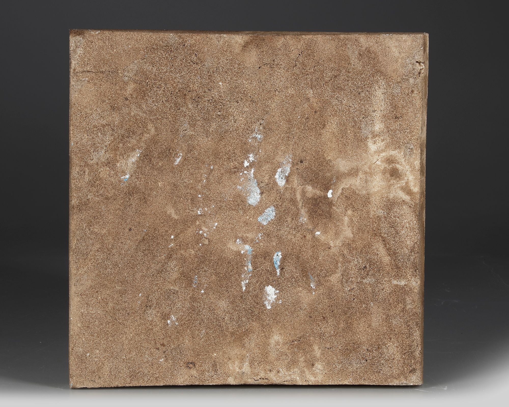 The white ground decorated in bole-red, green and turquoise with a view of al-Masjid al-Haram.The Kabaa is located in the centre with Maqam Ibrahim, surrounded by four Maqams, maqam Al-Hanafi, Al-Maliki, Al-Shafi' and Al-Hanbli, . The outer walls with seven minarets and turquoise painted domes.