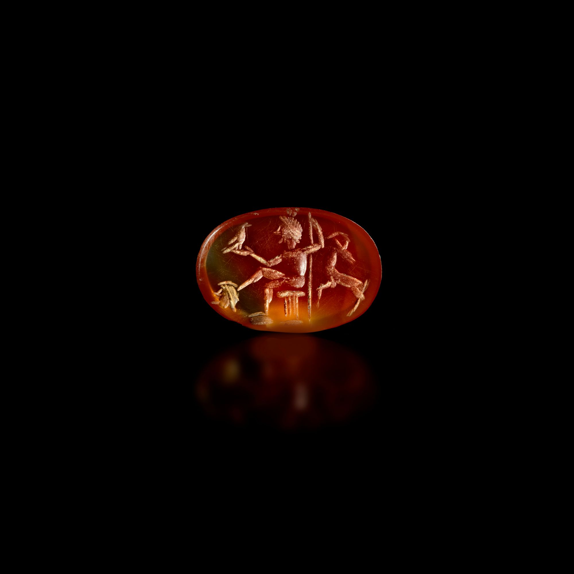 ROMAN CARNELIAN INTAGLIO WITH JUPITER SEATED. 1/2nd.c.A.D.