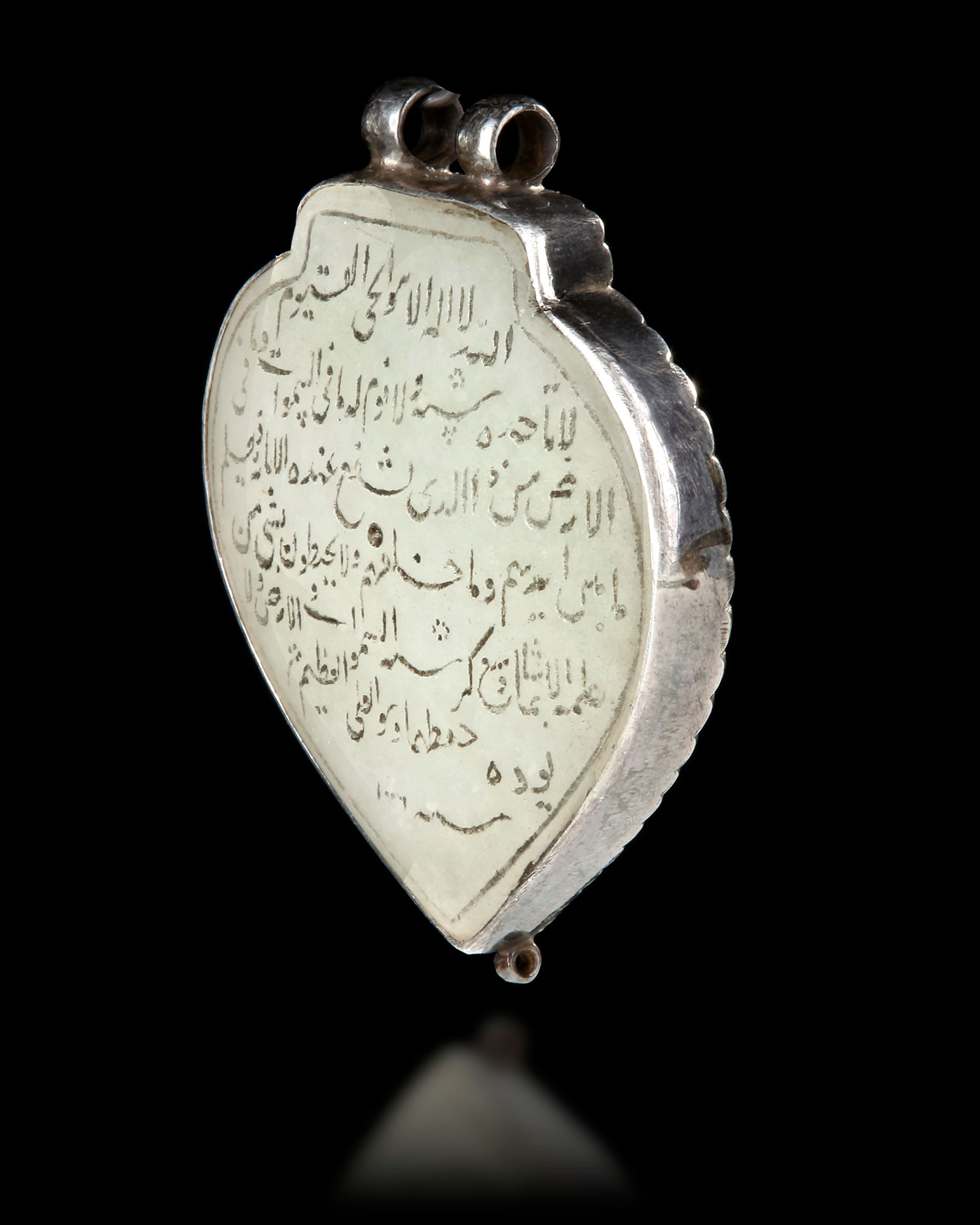 Lot 127A MUGHAL CALLIGRAPHIC JADE PENDANT (HALDILI), INDIA, DATED 1006 AH/1598 AD