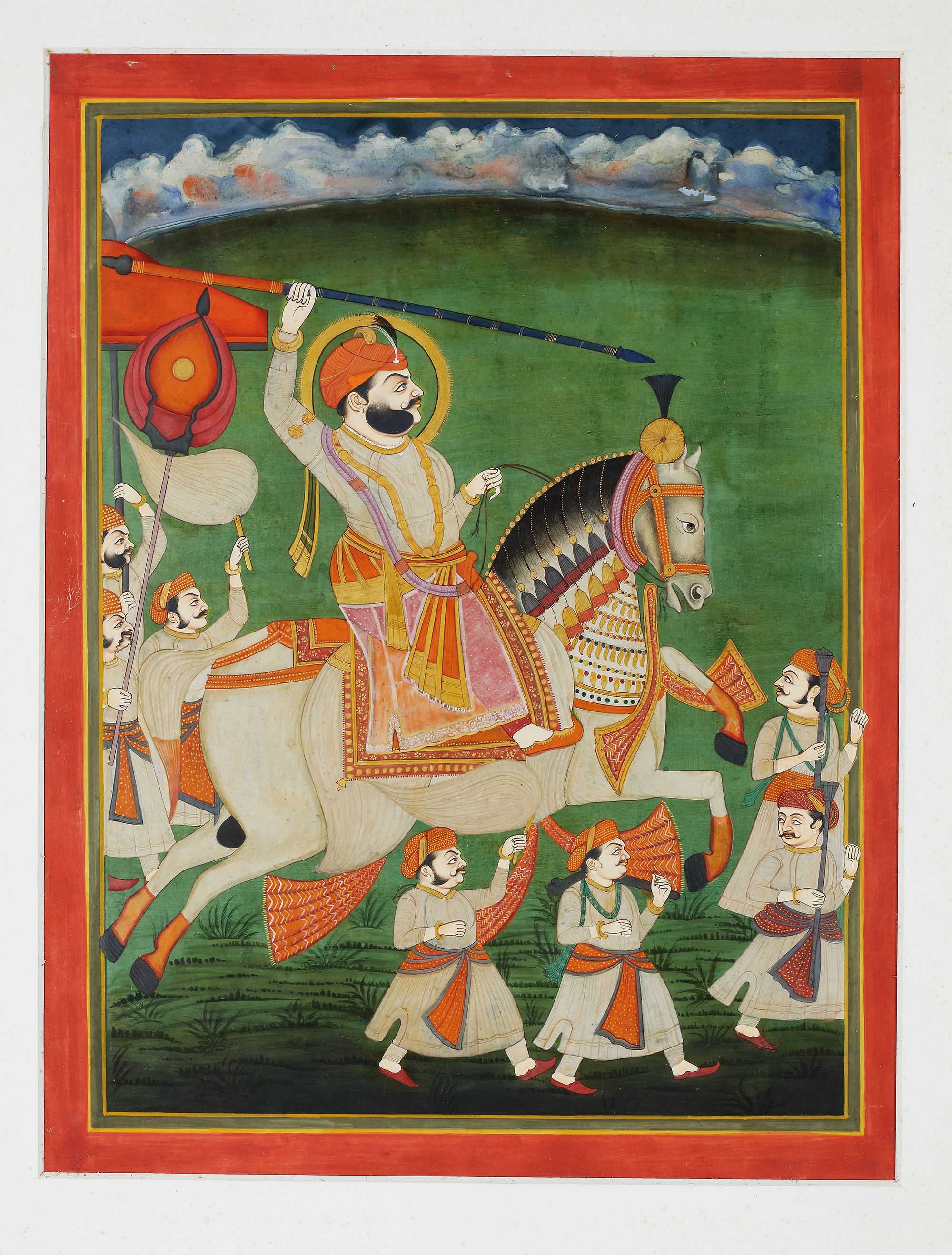 AN EQUESTRIAN PORTRAIT OF MAHARAJA MAN SINGH OF JODHPUR, RAJASTHAN INDIA, 19TH CENTURY