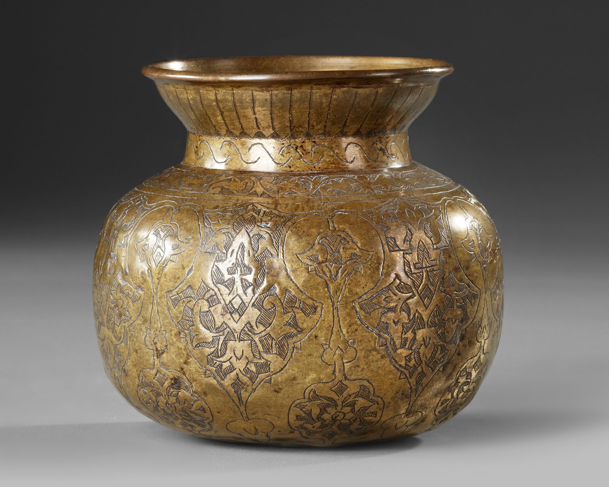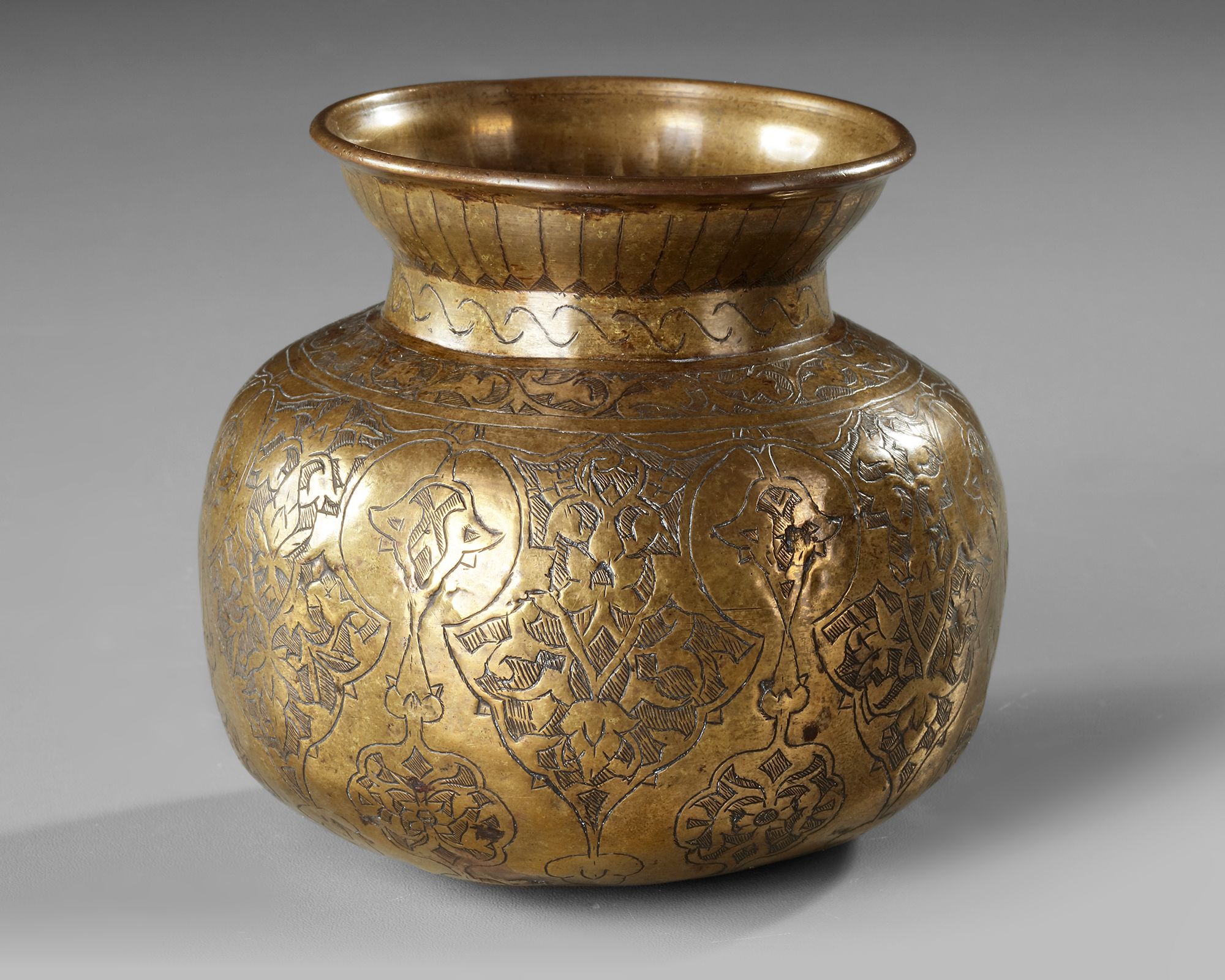 Lot 308A QAJAR ENGRAVED BRASS VASE, PERSIA, 19TH CENTURY