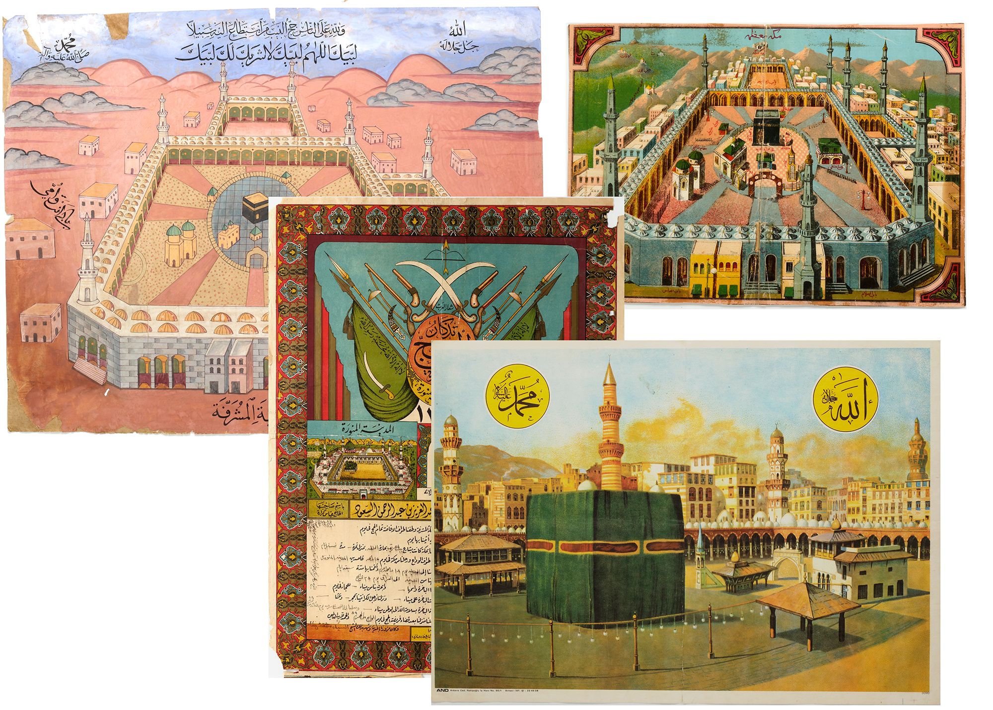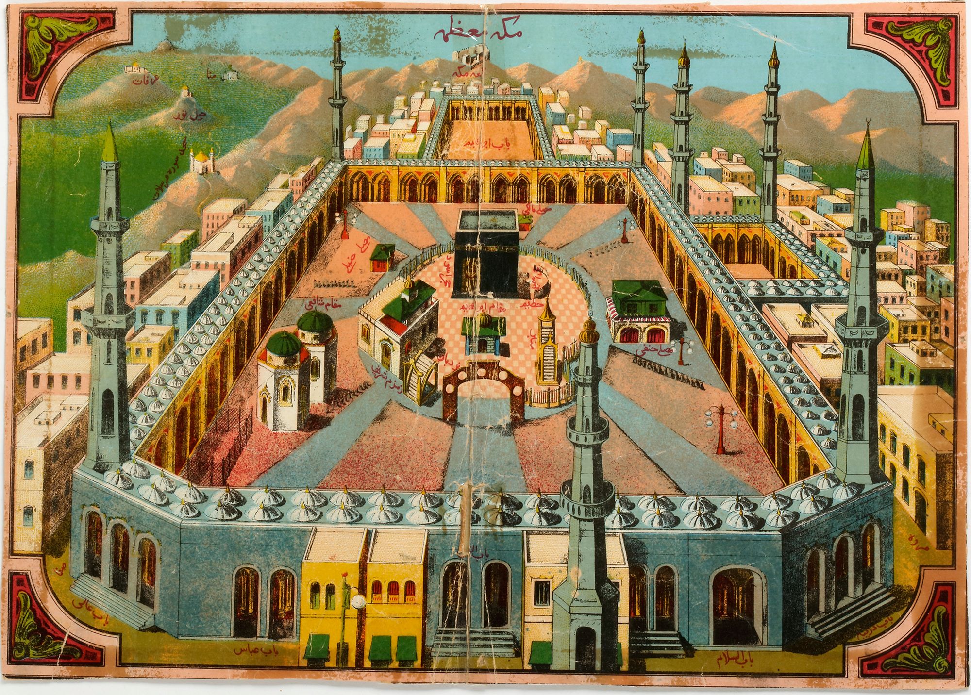 Two printed views of Mecca and al-Masjid al-Haram, 24 by 34 cm and 35 by 49 cm.