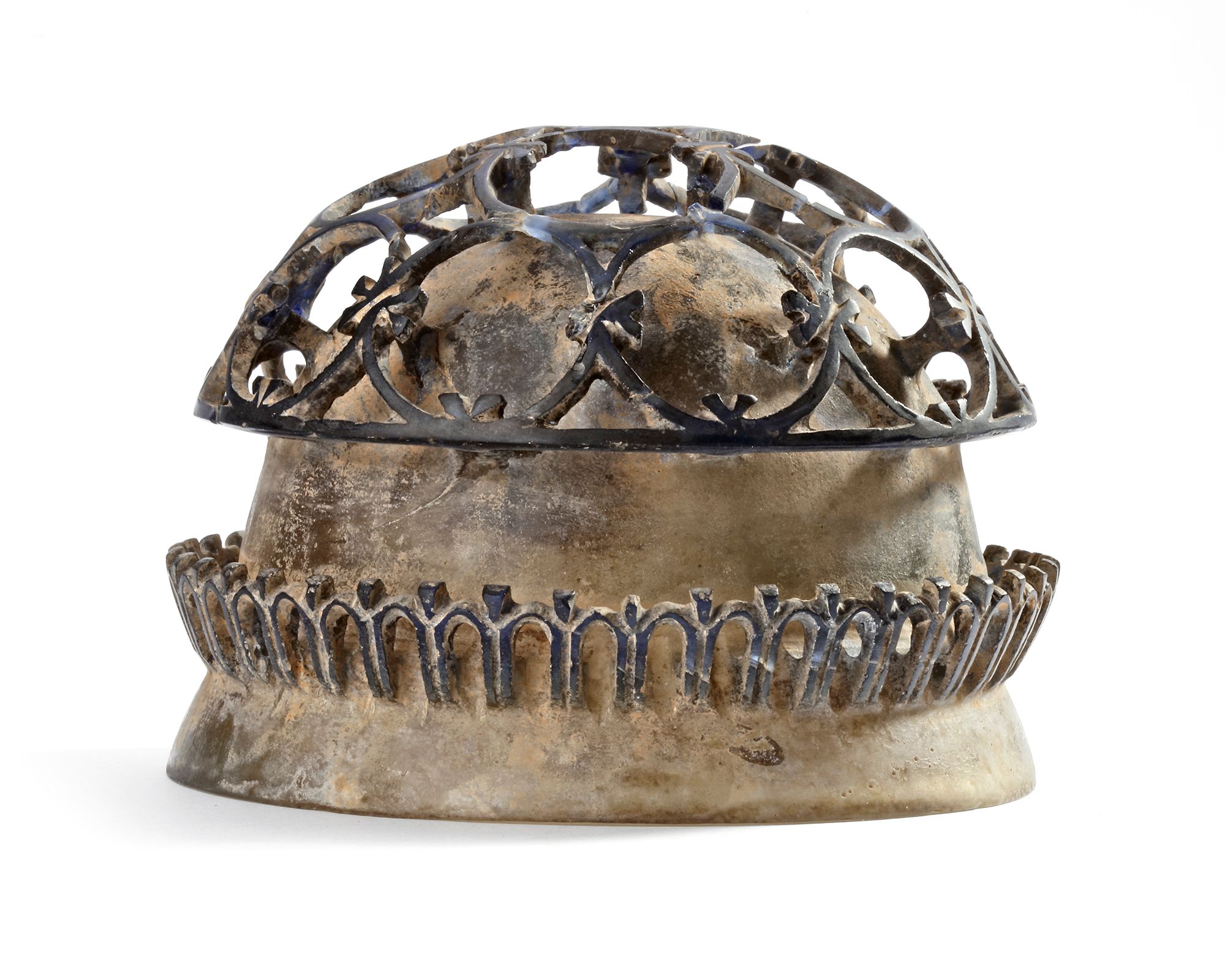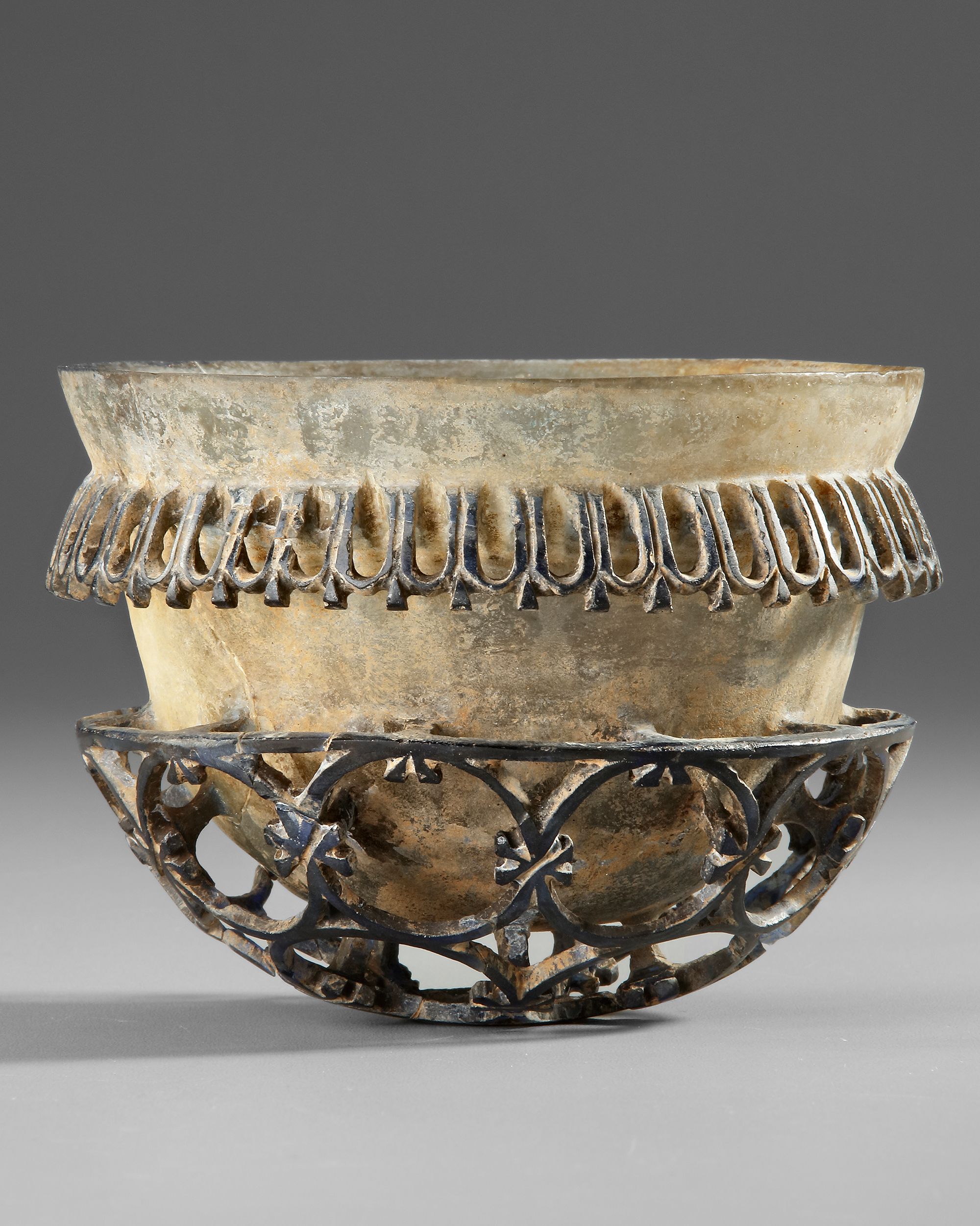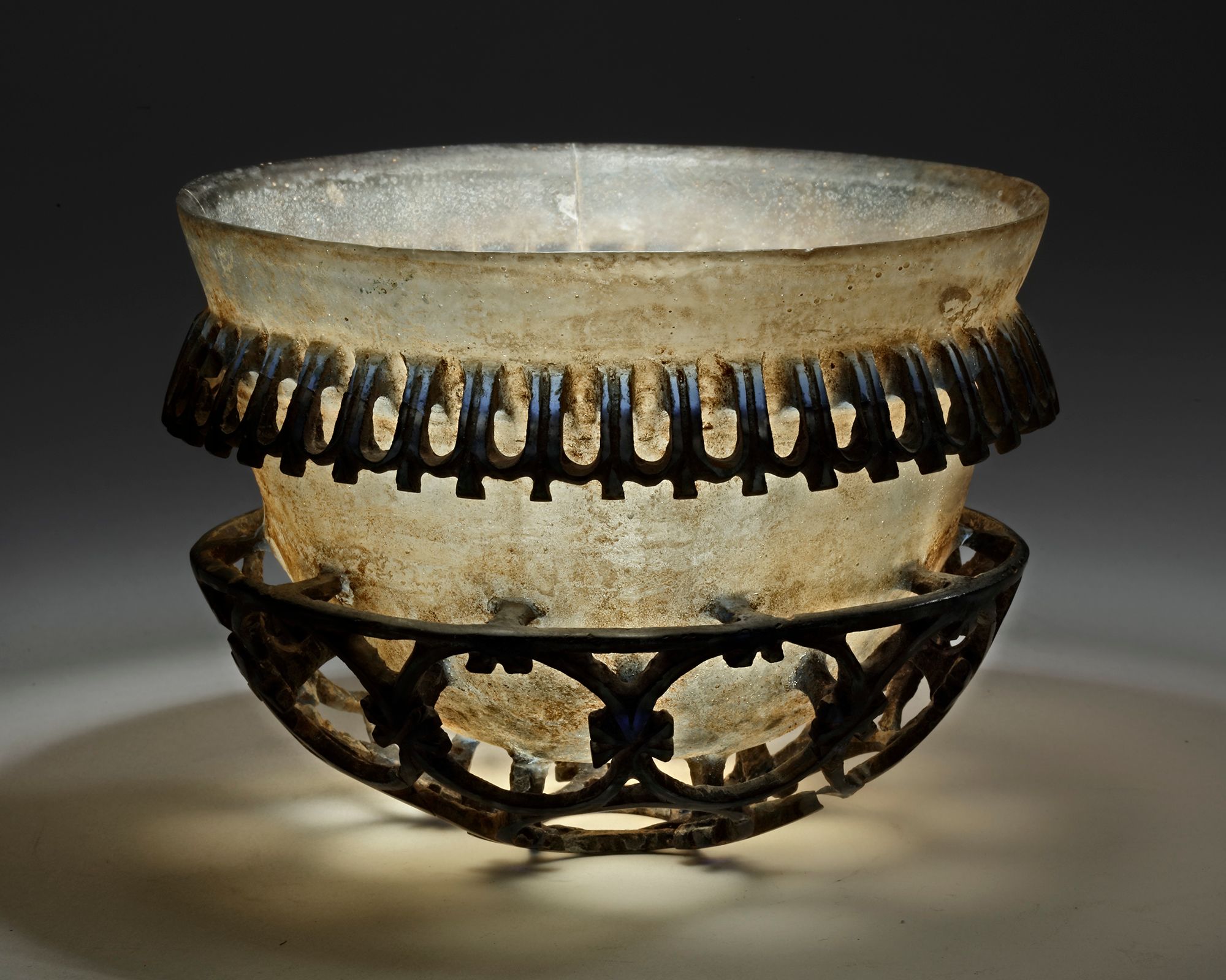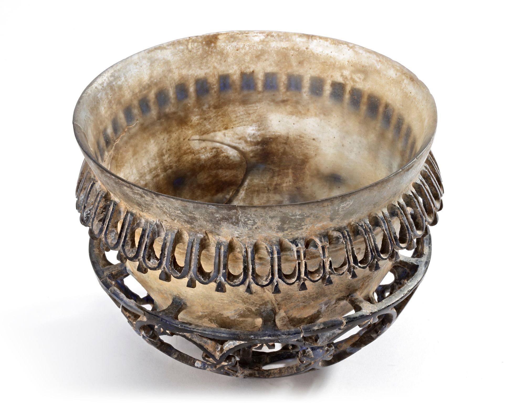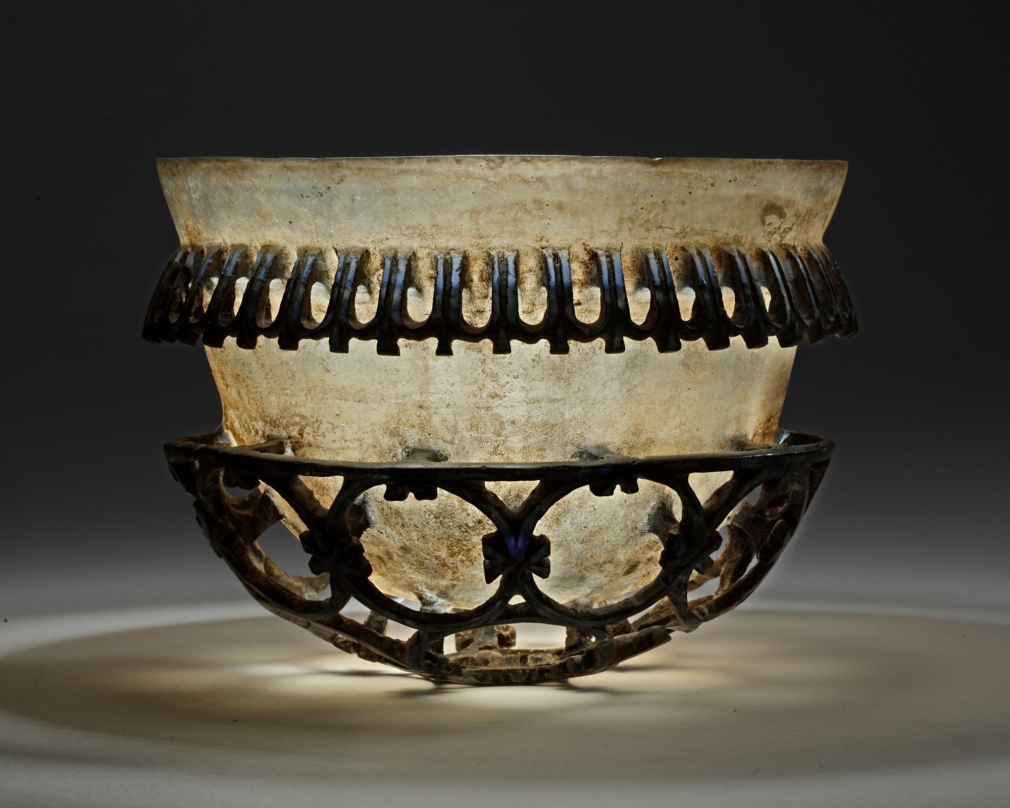 This cage is not separate, but intricately attached to the inner cup by delicate glass struts.