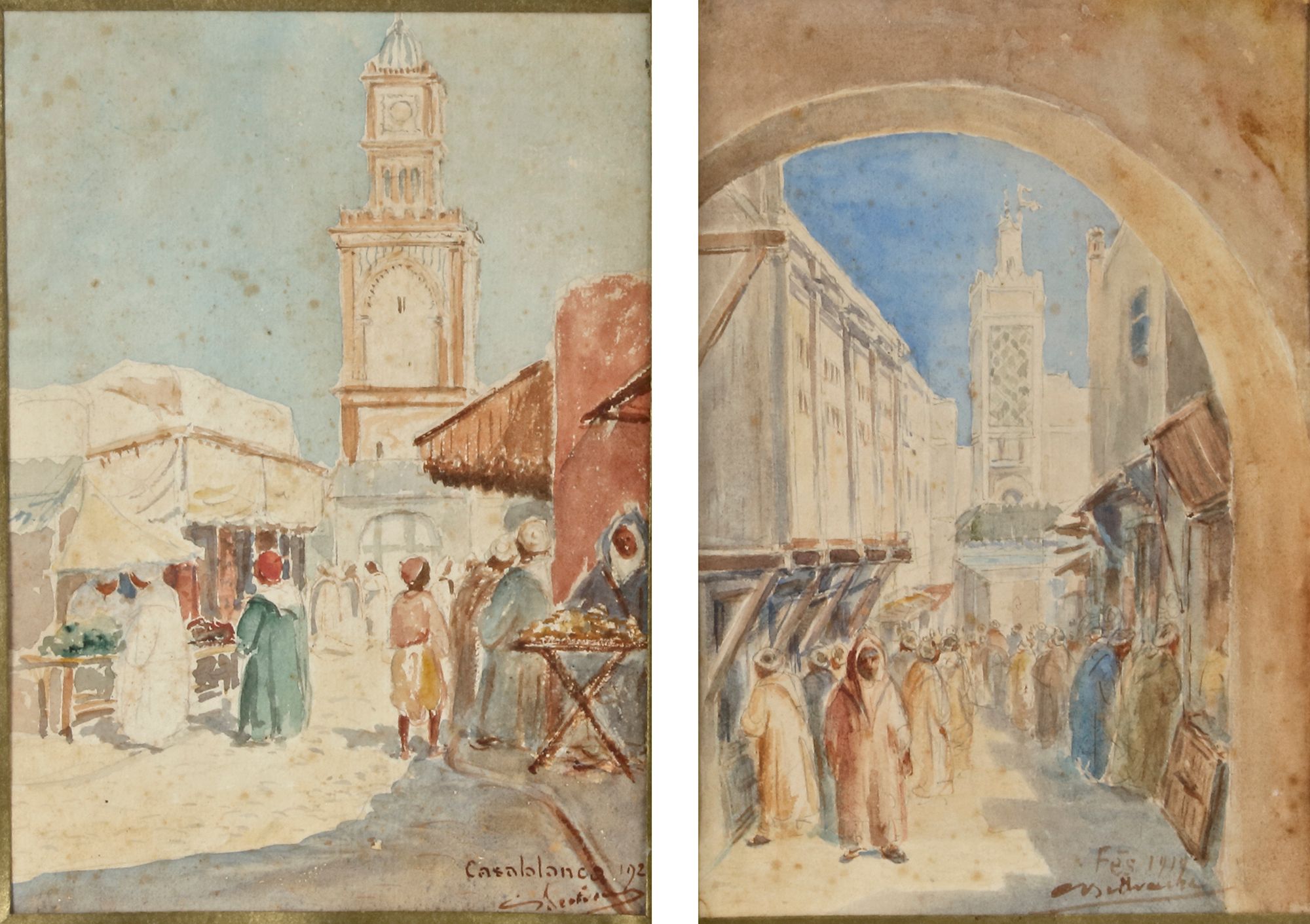 Signed indistinctly, inscribed and dated lower right, 'Fès 1919' / 'Casablanca 1923', 22 by 16 cm. (2)