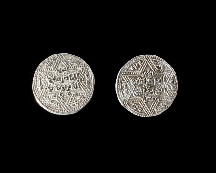 Saladin and his successors struck coins in gold, silver and copper in a variety of styles. The silver dirham shown here has an attractive six-pointed star design which is characteristic of coins struck in Aleppo, in Syria.