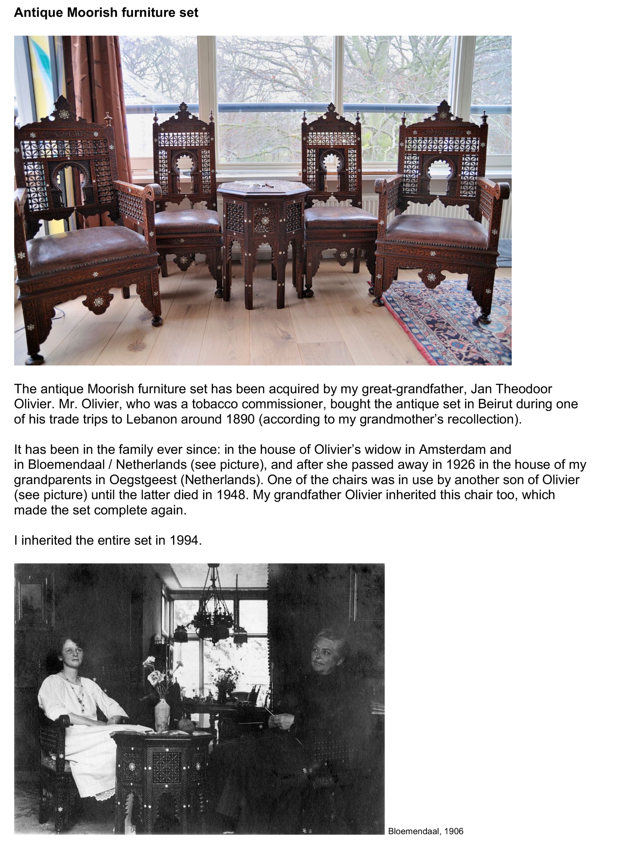 Private Dutch family, inherited from their grandfather, a tobacco commissioner, who purchased the items in Beirut during his trade trips around 1890.