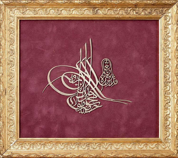 A pierced calligraphy panel in Tughra script.