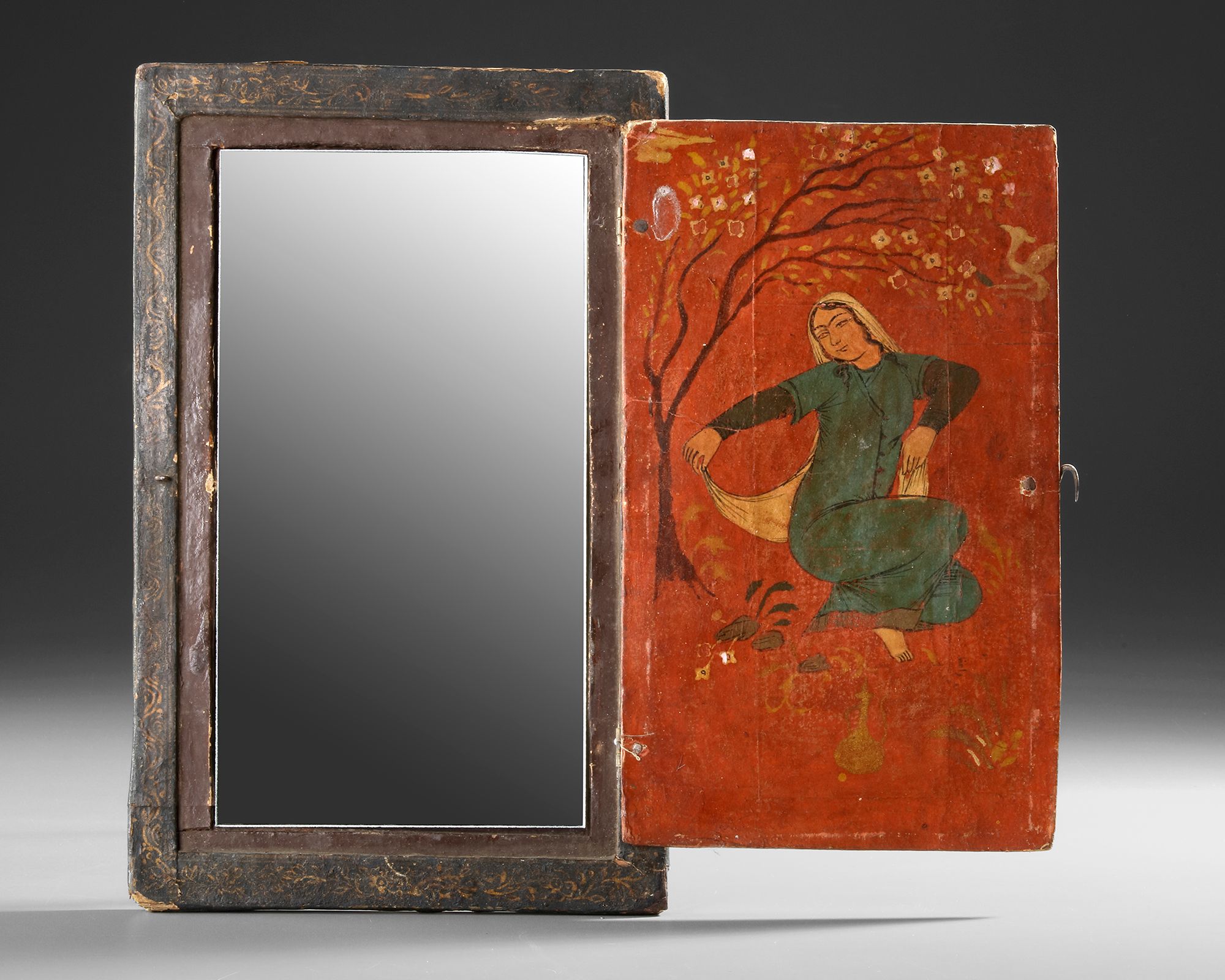 Lot 429A QAJAR LACQUERED PAPIER-MÂCHÉ MIRROR CASE, PERSIA 19TH CENTURY