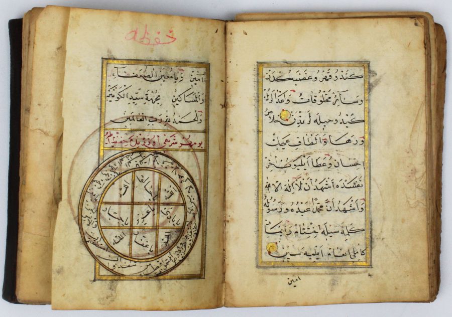 It contains duas for the Prophet and several surahs, including Al-Yasin and Al-Rahman.
