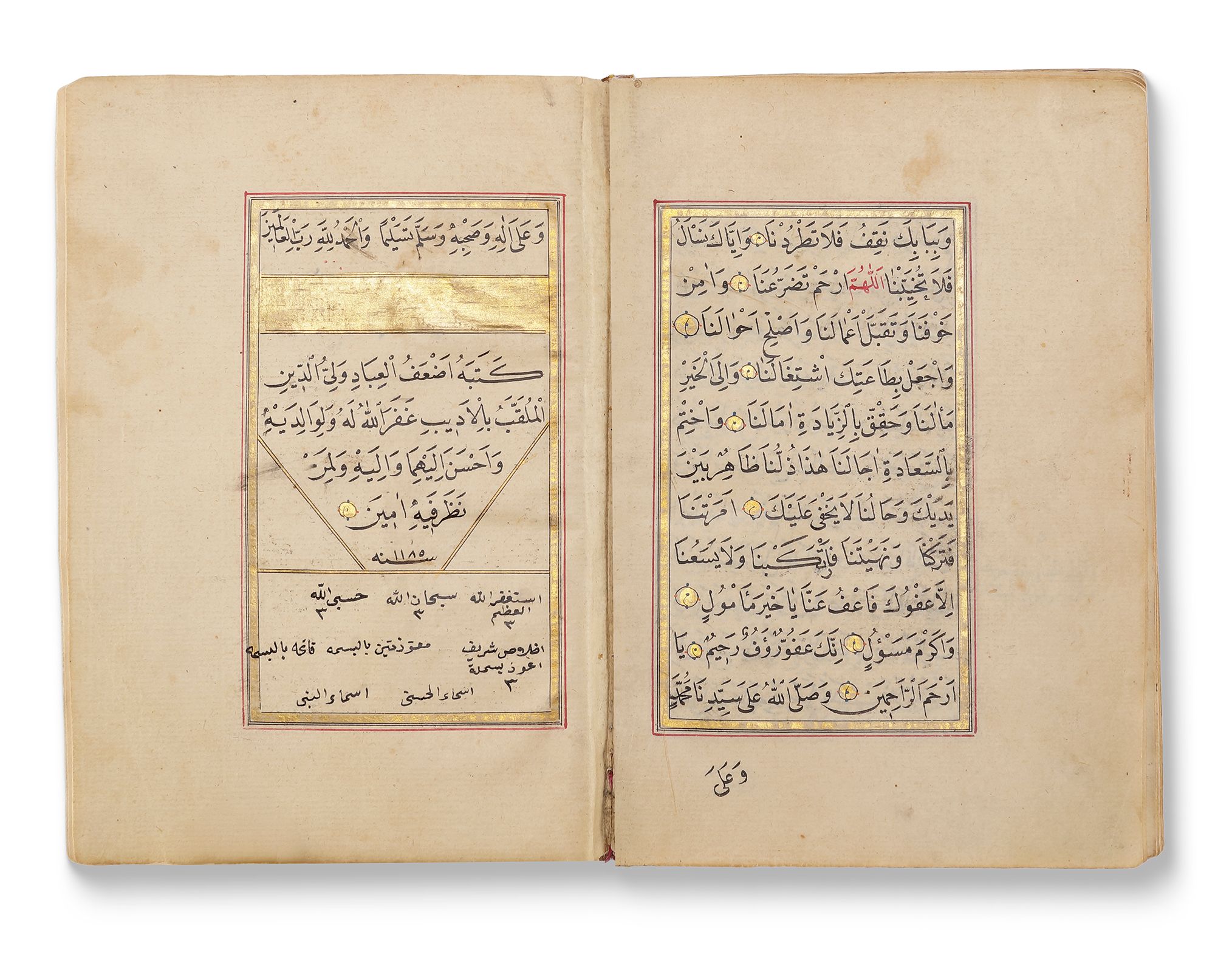 This manuscript likely represents or draws inspiration from Al-Ḥizb al-Aʿẓam wa al-Wird al-Afkhm, a distinguished compilation of devotional supplications (adhkār and duʿāʾs) rooted in authentic Prophetic traditions. The work was compiled by the esteemed Persian scholar Mullā ʿAlī ibn Sulṭān Muḥammad al-Qārī al-Harawī, and includes a carefully curated selection of Qur’anic invocations, authenticated Prophetic supplications, and formulas for invoking blessings upon the Prophet.