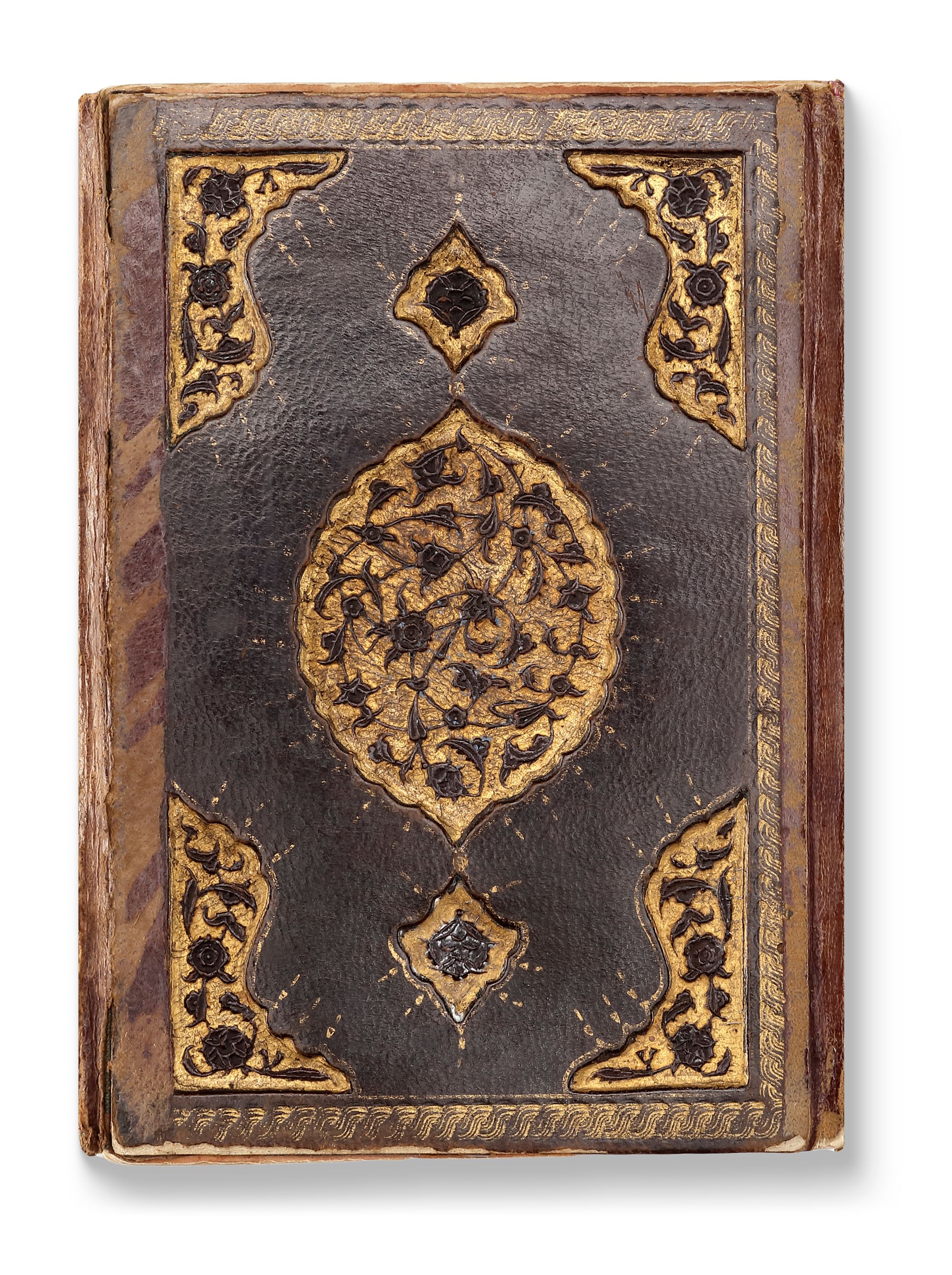 Housed in its original tooled and stamped gilt brown morocco binding with envelope flap.