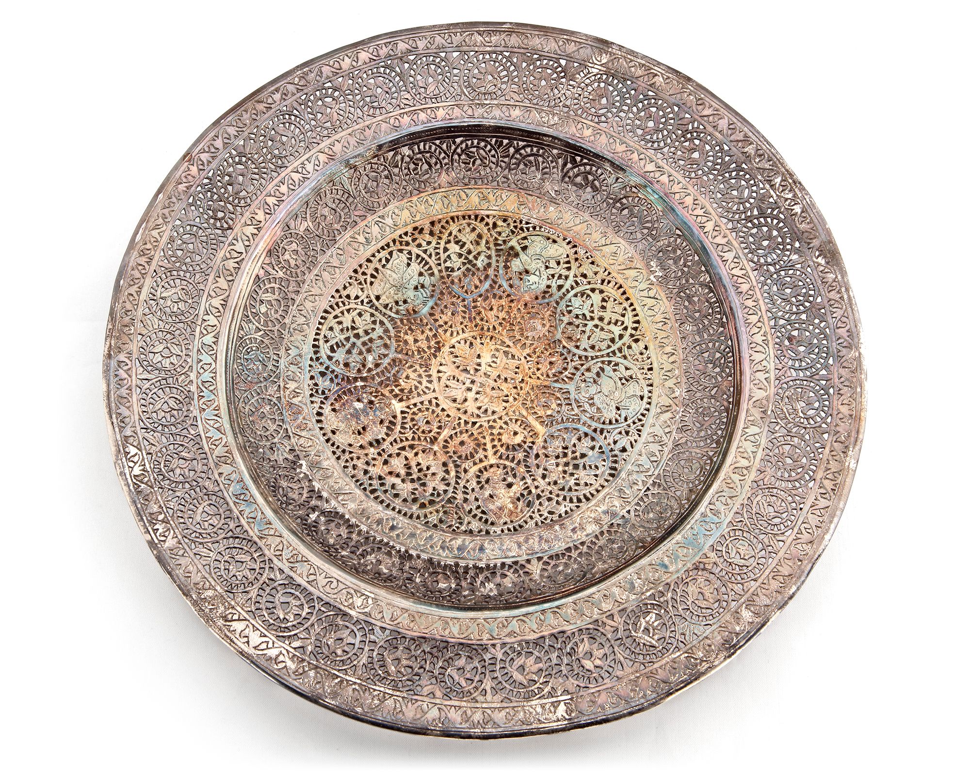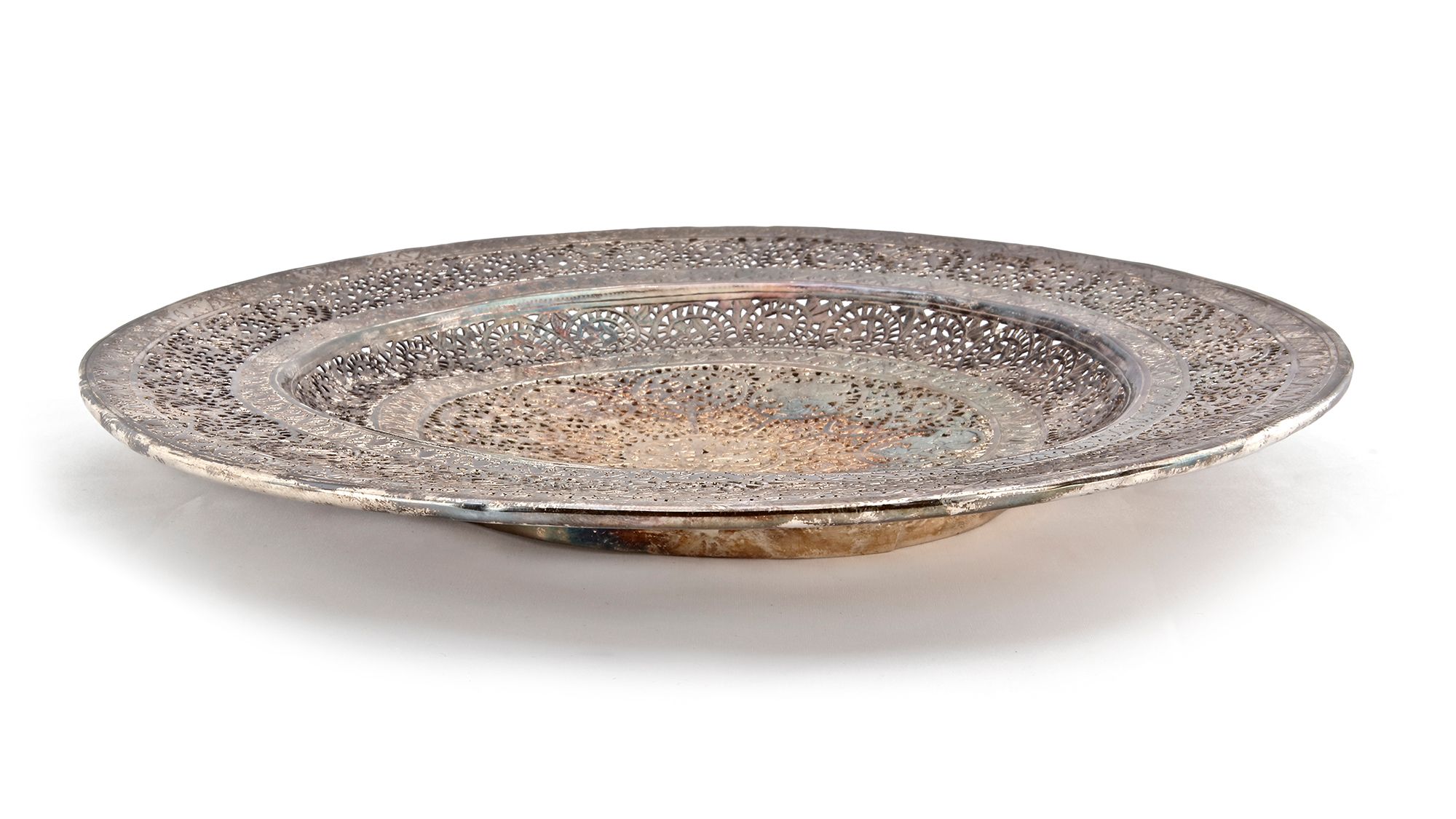 Finely crafted with intricate openwork and delicate engraved patterns. Diam 23 cm. 220 gr. THE DR. SAAD AL-JADIR COLLECTION