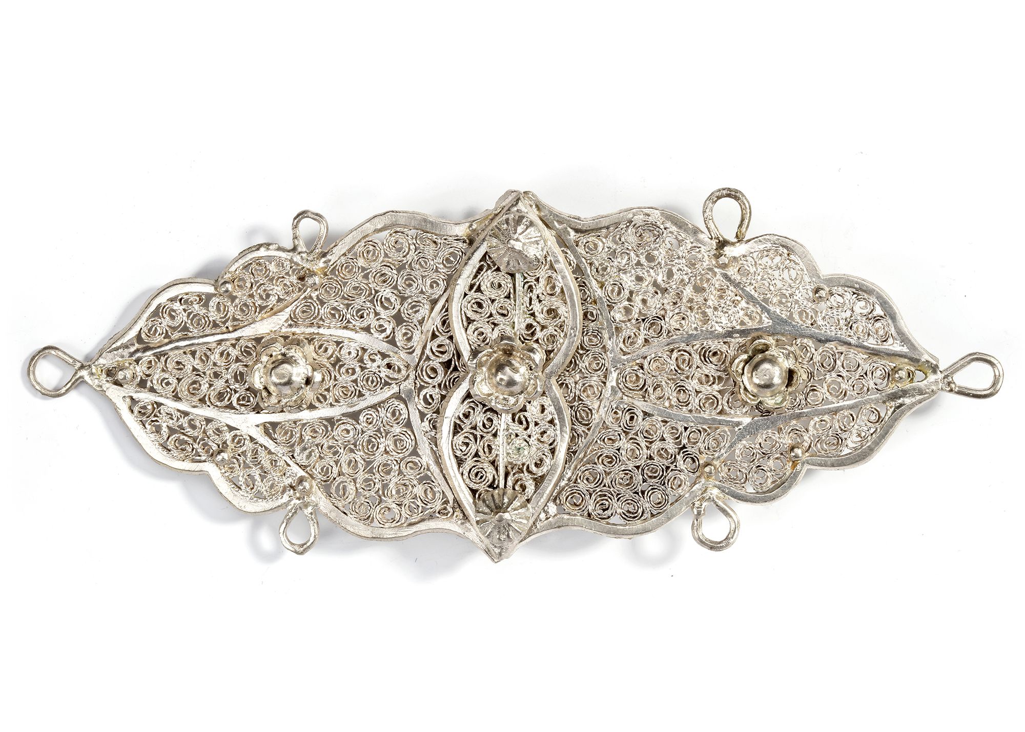 Finely crafted with delicate filigree work and floral motifs. 16 by 6 cm. 76 gr. THE DR. SAAD AL-JADIR COLLECTION
