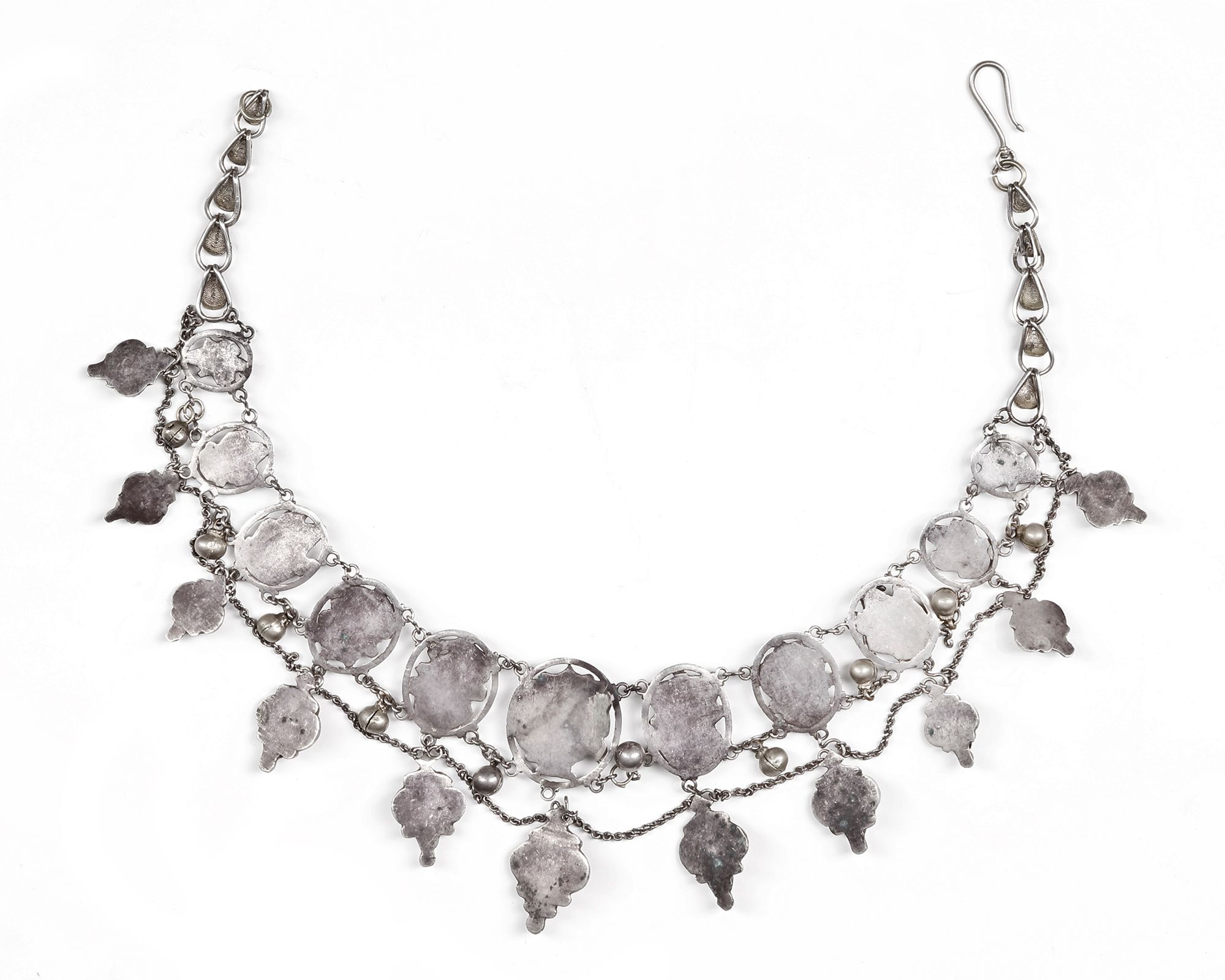 Featuring ornate plaques with finely cast deity figures in high relief. The design is enriched with small dangling elements and bead-like pendants.