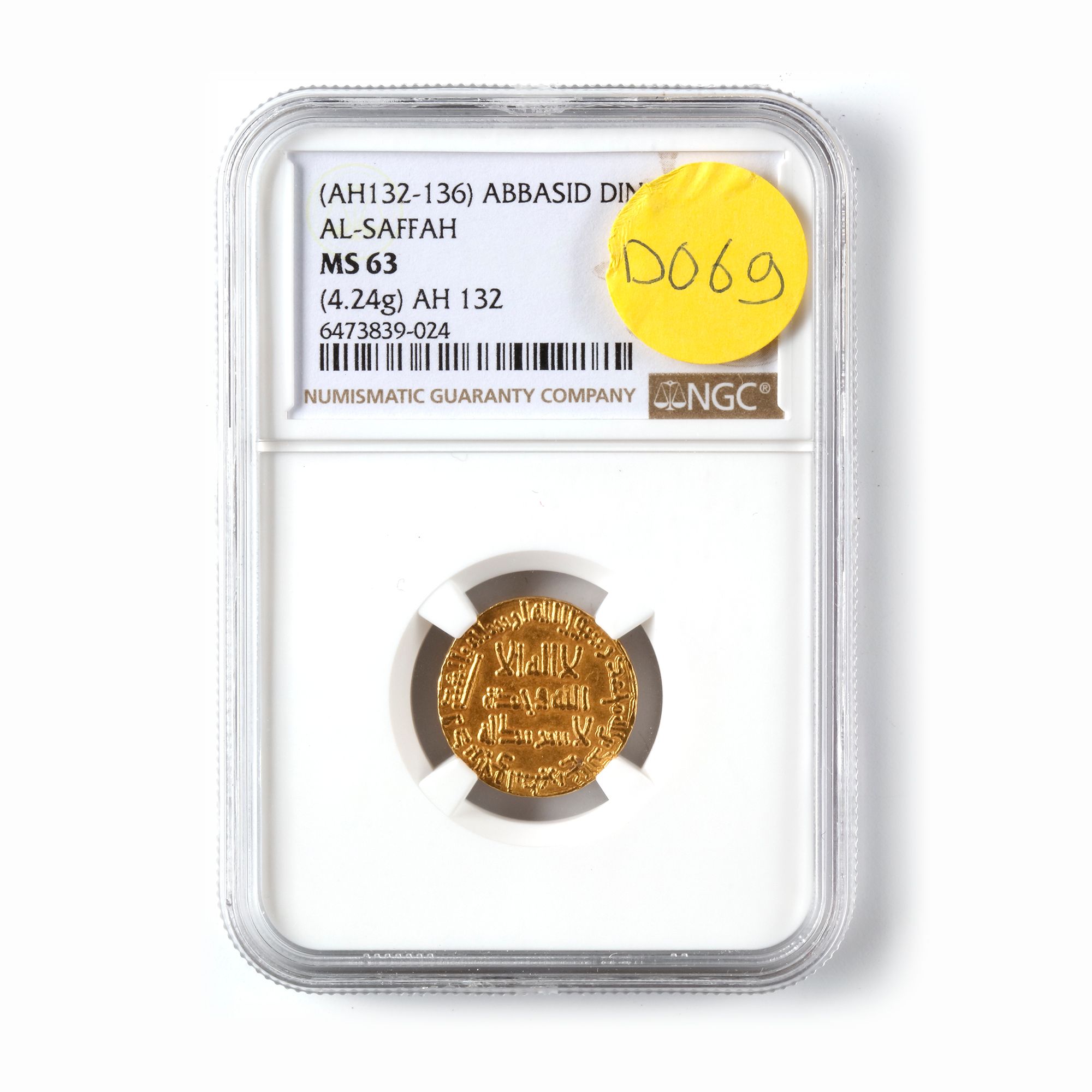 An Extremely Rare First-Year Gold Dinar of Abdullah Al-Saffah – 132 AH / 716 AD Weight: 4.24 grams Condition: Very Good Accompanied by a Certificate of Authenticity This exceptional and historically significant gold dinar marks the first year of minting under the Abbasid Caliph Abdullah Al-Saffah. Struck in the year 132 AH (716 AD), it represents a pivotal moment in Islamic numismatic history. Obverse (Side One): In the name of Allah, this dinar was struck in the year one hundred and thirty-two. Muhammad is the Messenger of Allah. (Arabic: بسم الله، ضُرب هذا الدينار سنة اثنتين وثلاثين ومئة. محمد رسول الله) Reverse (Side Two): Muhammad is the Messenger of Allah, whom He sent with guidance and the religion of truth, to make it prevail over all religions. There is no god but Allah alone; He has no partner. (Arabic: محمد رسول الله، أرسله بالهدى ودين الحق ليُظهره على الدين كله، لا إله إلا الله وحده لا شريك له)