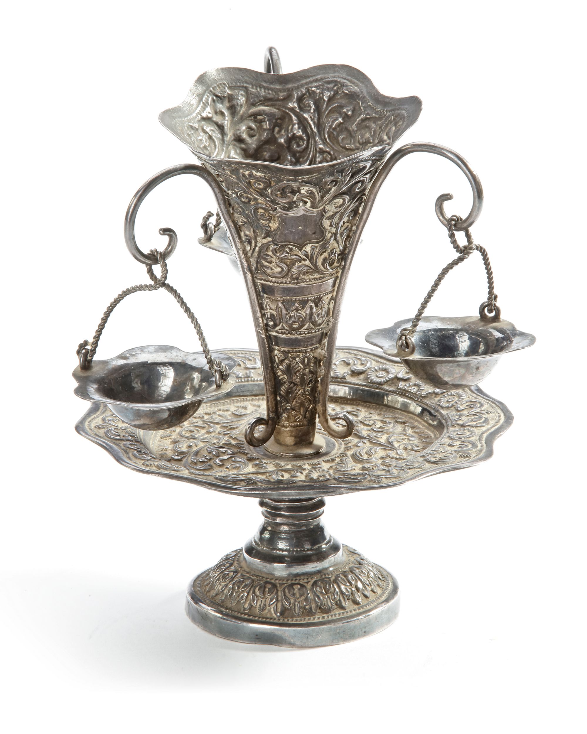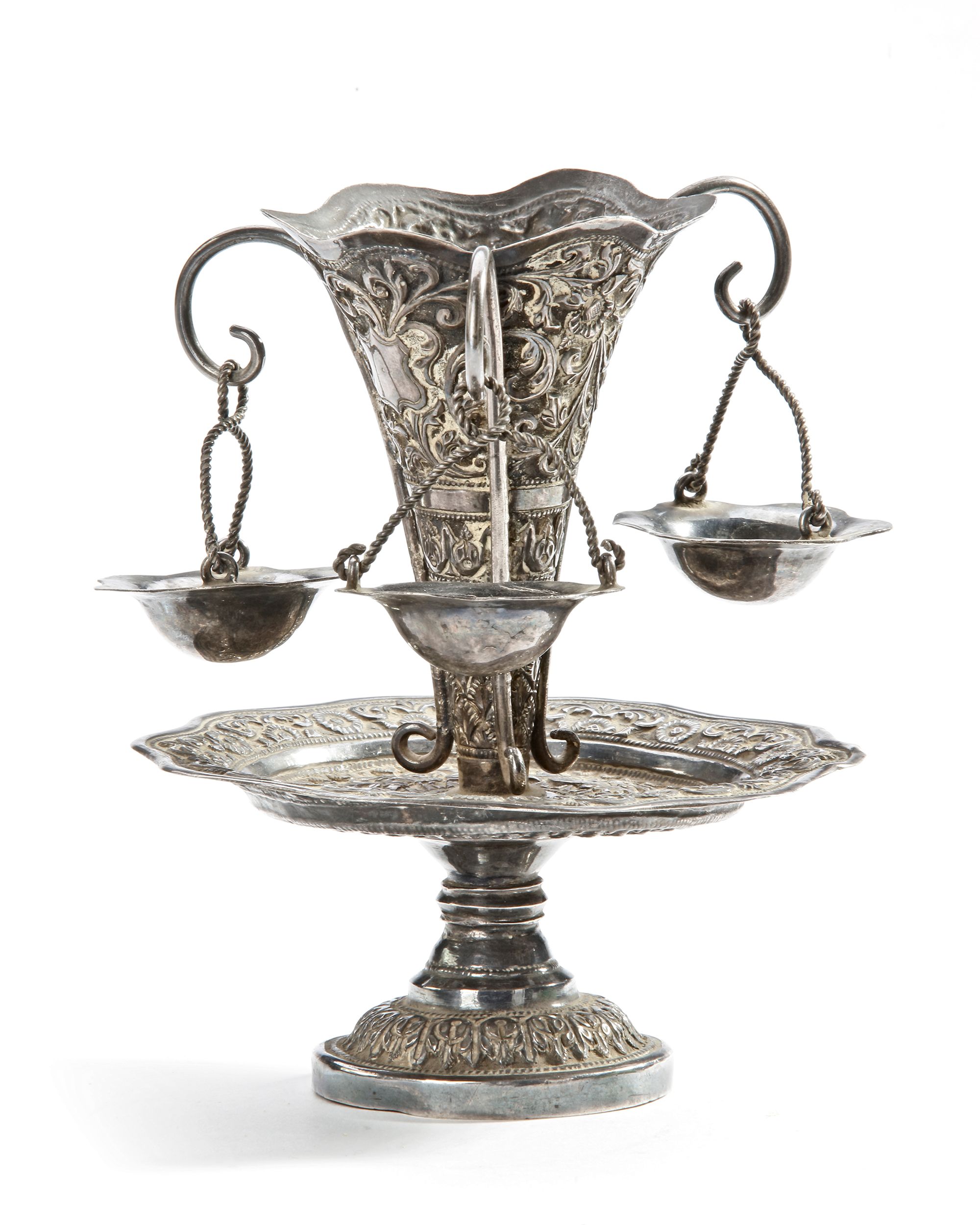 Lot 315AN OTTOMAN SILVER VASE WITH THREE HANGING CUPS, 19TH CENTURY