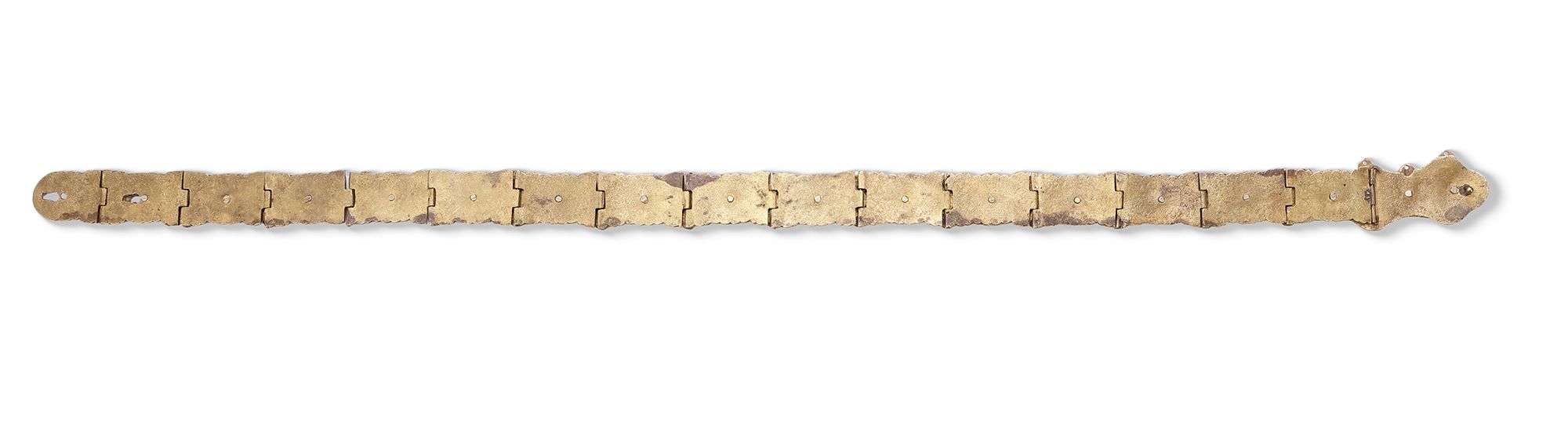 With gilt details, featuring oval panels framed by intricate beadwork and a central clasp with floral motifs.
