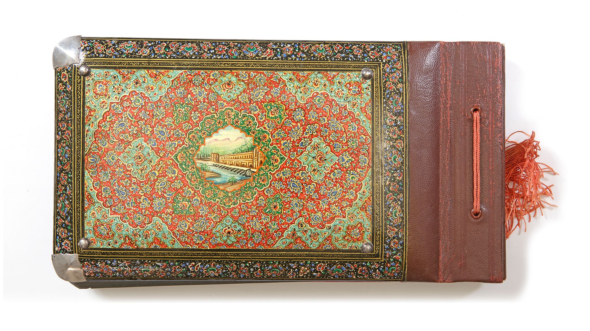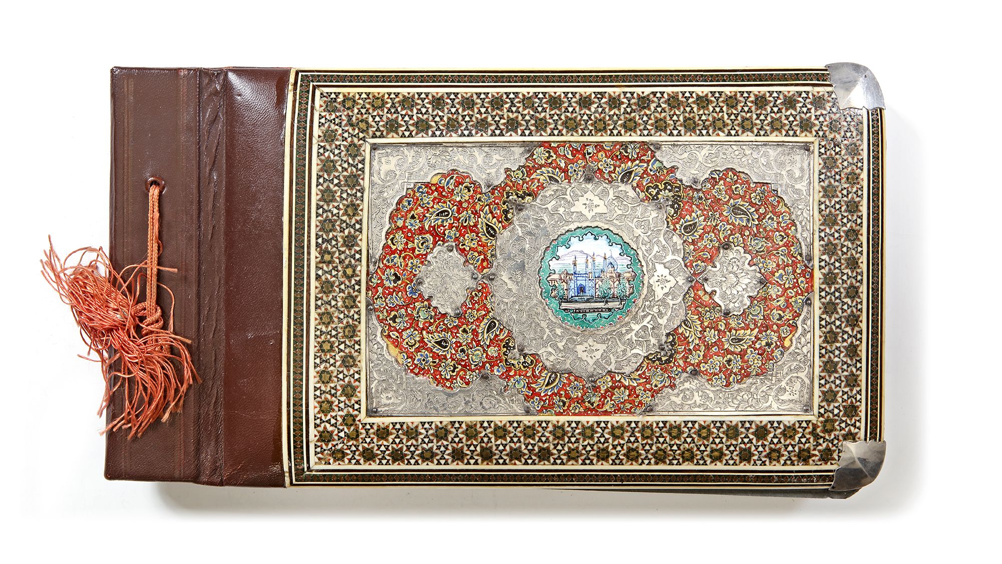 With finely detailed silver cover, richly adorned with colorful floral motifs and central miniature painting. 31 by 17 cm. 862 gr.