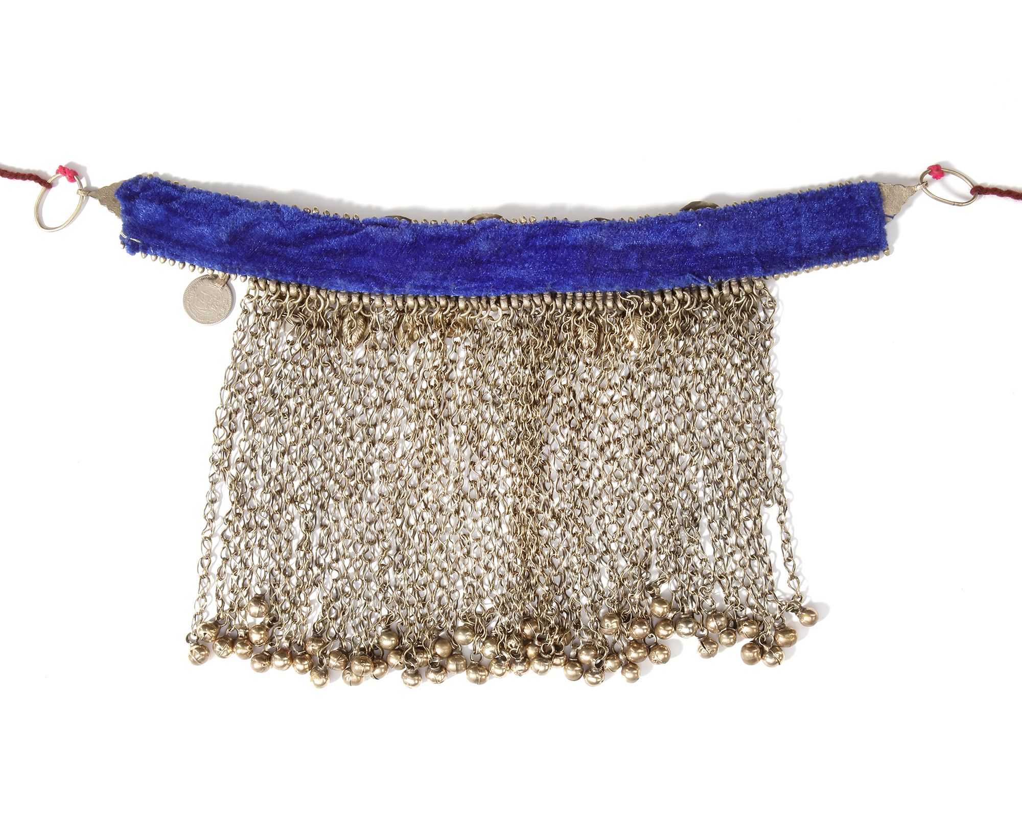 With chains, coin pendants, and colorful glass inlays, richly decorated. ca. 34 by 17 cm. 436 gr. THE DR. SAAD AL-JADIR COLLECTION