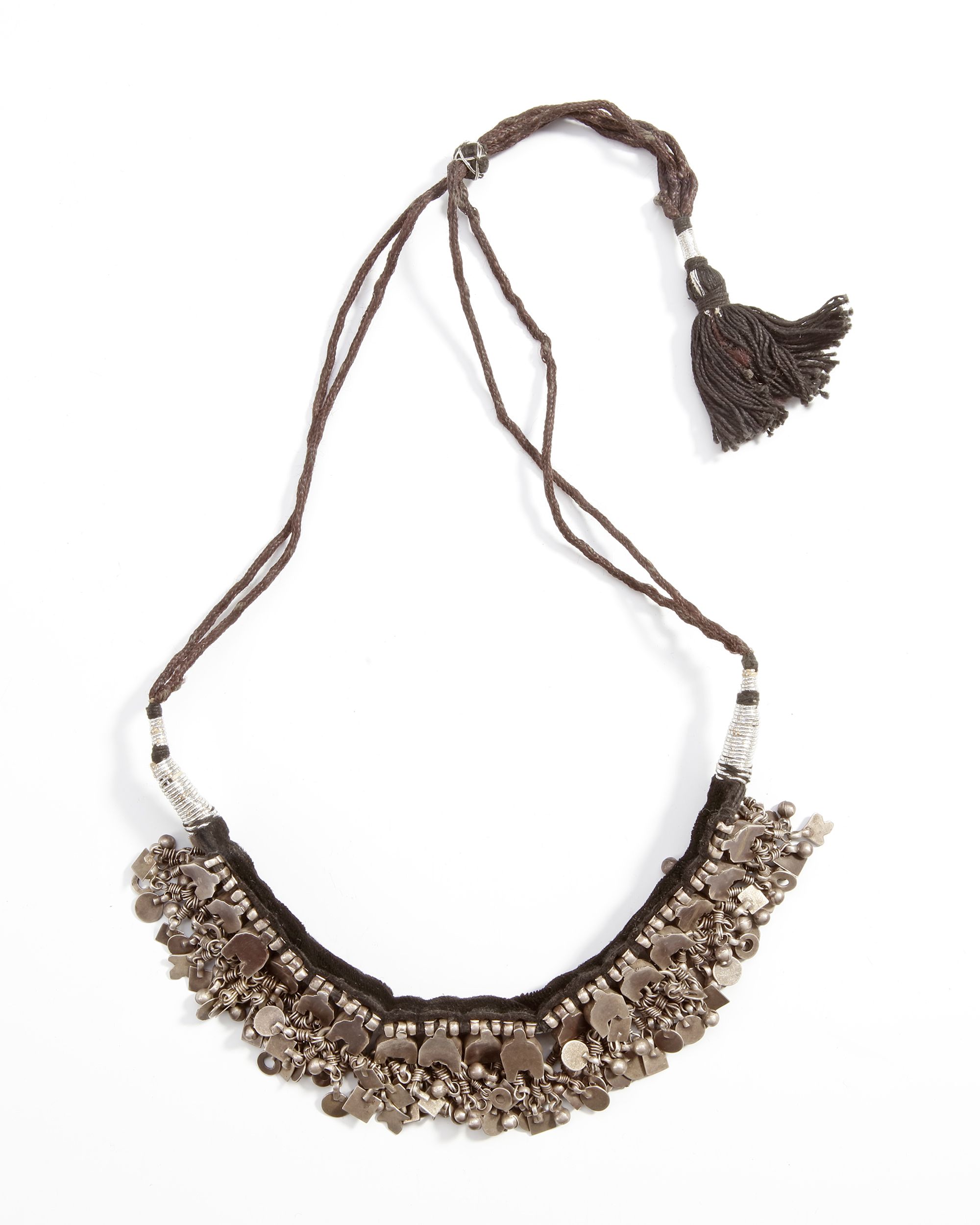 With rows of yellow glass insets, set in silver and richly decorated with dangling chains and charms. 20 cm. 128 gr. THE DR. SAAD AL-JADIR COLLECTION