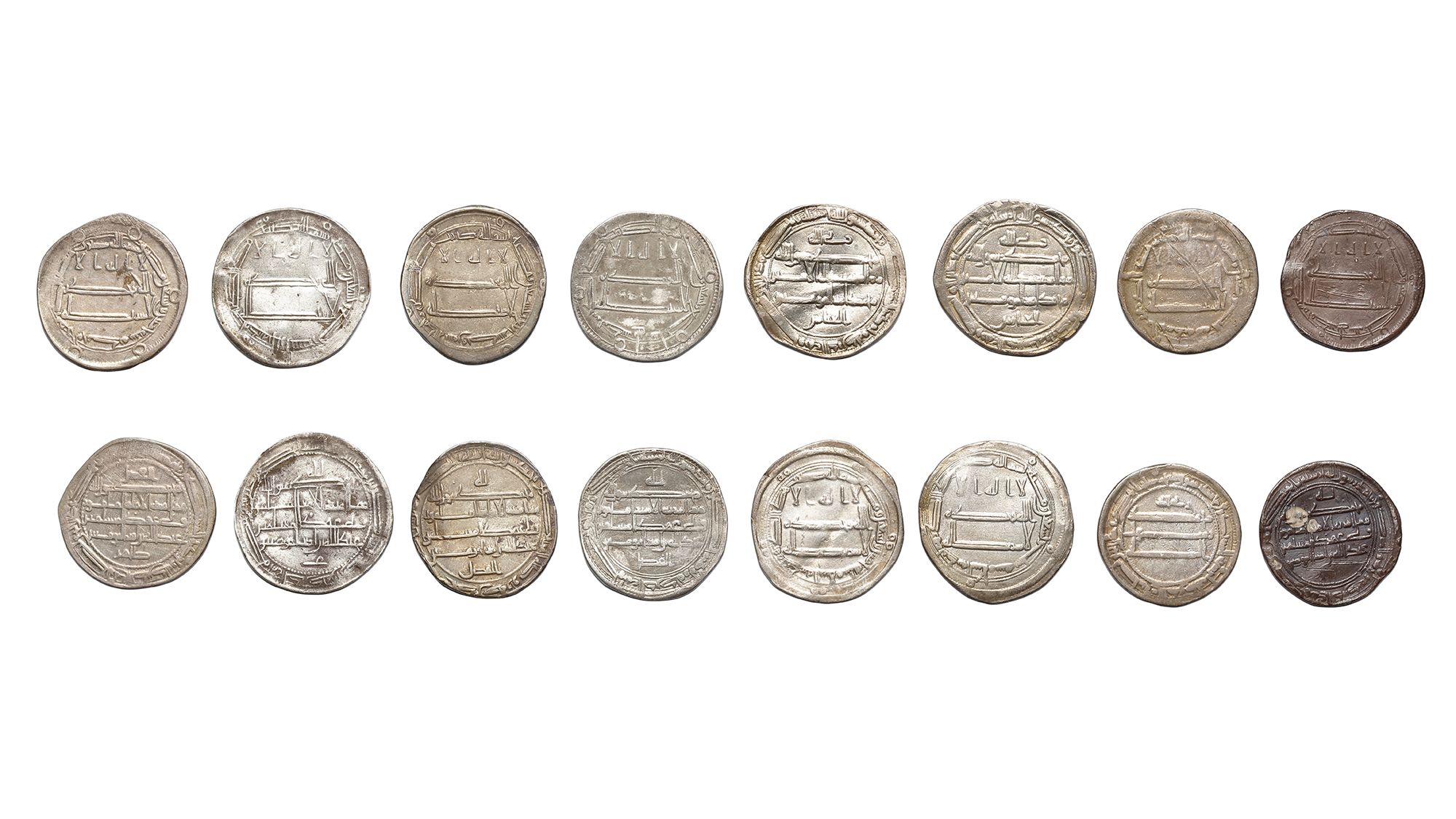 Eight silver dirhams, struck in different cities across various years during the reign of al-Amin. A silver dirham, Balkh mint, dated 193AH/ 809AD, 2.7g, 21mm. A silver dirham, al-Muhammadiya mint, dated 193AH/ 809AD, 2.9g, 21mm. A silver dirham, Balkh mint, dated 194AH/ 810AD, 2.6g, 23mm. A silver dirham, ( Fadl, viezier) Samarqand mint, dated 194AH/ 810AD, 2.9g, 23mm. A silver dirham, Bukhara mint, dated 194AH/ 810AD, 2.5g, 23mm. A silver dirham, al-Muhammadiya mint, dated 195AH/ 811AD, 2.9g, 23mm. A silver dirham, Madinat al-Salam mint, dated 195AH/ 811AD, 2.8g, 23mm. A silver dirham, Madinat al-Salam mint, dated 196AH/ 812AD, 2.8g, 24mm.