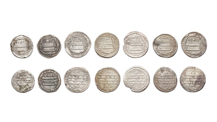Seven silver dirhams, struck in different cities across various years during the reign of al-Amin. A silver dirham, Nishapur mint, dated 193AH/ 809AD, 2.8g, 23mm. A silver dirham, Samarqand mint, dated 193AH/ 809AD, 2.3g, 22mm. A silver dirham, Samarqand mint, dated 194AH/ 810AD, 2.7g, 22mm. A silver dirham, Madinat al-Salam mint, dated 194AH/ 810AD, 2.8g, 21mm. A silver dirham, ( Fadl, viezier) Nishapur mint, dated 194AH/ 810AD, 2.9g, 22mm. A silver dirham, Nishapur mint, dated 194AH/ 810AD, 2.9g, 20mm. A silver dirham, Samarqand mint, dated 195AH/ 811AD, 3.1g, 23mm.