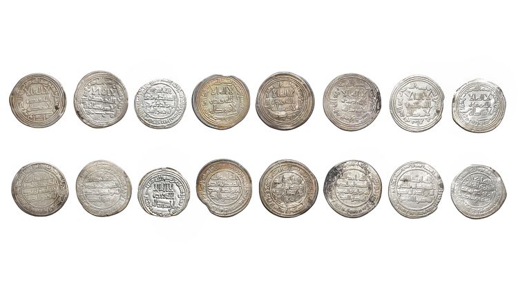 A collection of eight silver dirhams, struck in different cities during the reign of Sulayman and Walid ibn 'Abd al-Malik'. A silver dirham, Kirman mint, dated 90AH/ 708AD, 2.6g, 26mm. A silver dirham, Manadhir mint, dated 95AH/ 713AD, 2.7g, 24mm. A silver dirham, Mahi mint, dated 95AH/ 713AD, 2.5g, 25mm. A silver dirham, Hamdan mint, dated 95AH/ 713AD, 2.7g, 25mm. A silver dirham, Ardashir khurra mint, dated 97AH/ 715AD, 2.6g, 25mm. A silver dirham, Dimishq mint, dated 98AH/ 716AD, 2.2g, 22mm. A silver dirham, Wasit mint, dated 98AH/ 716AD, 2.5g, 25mm. A silver dirham, Rayy mint, dated 98AH/ 716AD, 2.1g, 25mm.
