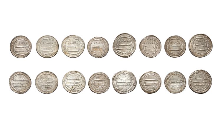 Eight silver dirhams, struck in different cities across various years during the reign of al-Mansur. A silver dirham, al-Busra mint, dated 147AH/ 764AD, 2.8g, 22mm. A silver dirham, al-Muhammadiya mint, dated 148AH/ 765AD, 2.8g, 24mm. A silver dirham, al-Muhammadiya mint, dated 150AH/ 767AD, 2.9g, 24mm. A silver dirham, al-Muhammadiya mint, dated 151AH/ 768AD, 2.6g, 23mm. A silver dirham, al-Muhammadiya mint, dated 152AH/ 769AD, 2.8g, 25mm. A silver dirham, al-Muhammadiya mint, dated 153AH/ 770AD, 2.6g, 25mm. A silver dirham, Madinat al-Salam mint, dated 157AH/ 774AD, 2.9g, 23mm. A silver dirham, Madinat al-Salam mint, dated 158AH/ 775AD, 2.8g, 23mm.