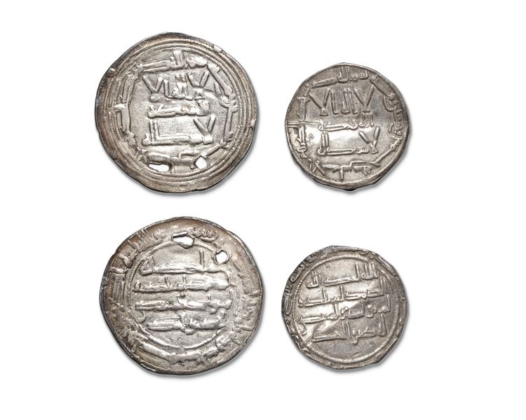 A silver dirham, al-Andalus mint, dated 155AH/ 771AD, 1.7g, 22mm. A silver dirham, al-Andalus mint, dated 163AH/ 779AD, 2.5g, 29mm(pierced).