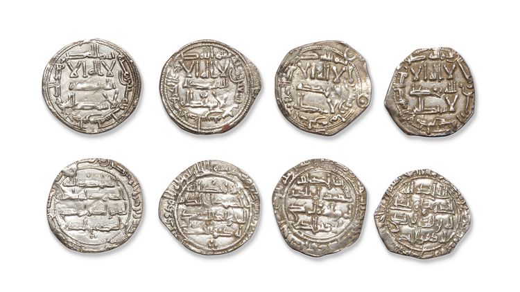 A silver dirham, al-Andalus mint, dated 186AH/ 802AD, 1.9g, 22mm. A silver dirham, al-Andalus mint, dated 196AH/ 811AD, 1.9g, 22mm. A silver dirham, al-Andalus mint, dated 198AH/ 813AD, 2.1g, 23mm. A silver dirham, al-Andalus mint, dated 204AH/ 819AD, 1.9g, 21mm.