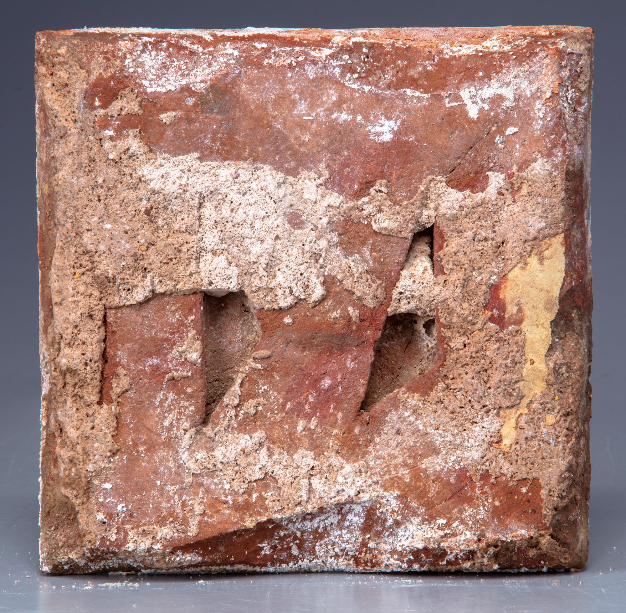 Persian pottery tile, decorated on a cobalt blue ground with yellow, black and blue , Arabic calligraphy. ca. 19 by 19 cm.