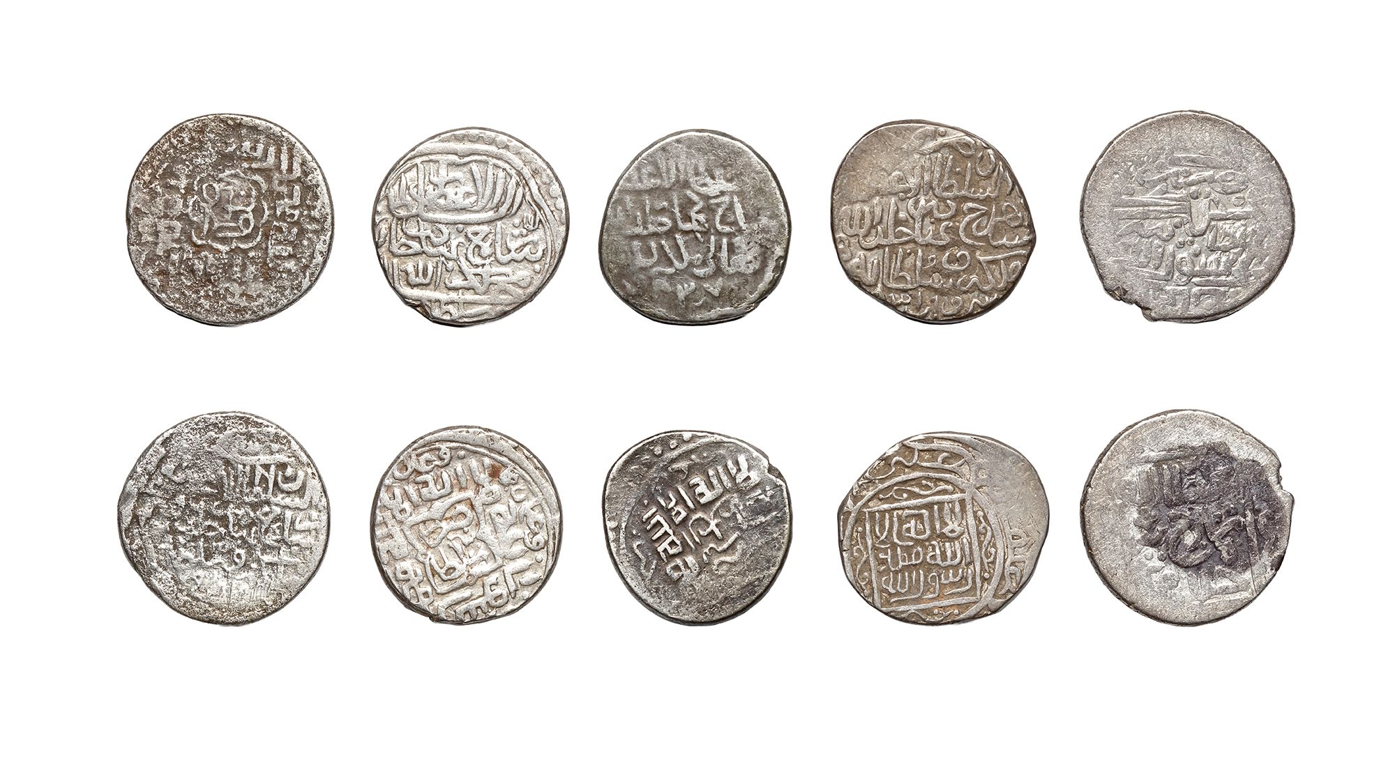 A silver Tanka, Sultaniya mint, dated 824AH/1421AD, 5.3g, 22mm. A silver Tanka, Sabzvar mint, dated 831AH/1427AD, 4.5g, 21mm. A silver Tanka, Sultaniya mint, dated 837AH/1433AD, 5.2g, 20mm. A silver Tanka, Sultaniya mint, dated 843AH/1439AD, 5.1g, 19mm. A silver Tanka, Sultaniya mint, dated 837AH/1444AD, 4.5g,20mm.