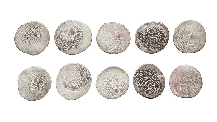 A silver Tanka, Bukhara mint, dated 991AH/1583AD, 4.1g, 28mm. A silver Tanka, Bukhara mint, dated 993AH/1585AD, 4.7g, 28mm. A silver Tanka, Bukhara mint, dated 995AH/1586AD, 4.5g, 28mm. A silver Tanka, Bukhara mint, dated 996AH/1587AD, 4.2g, 28mm. A silver Tanka, Bukhara mint, dated 997AH/1588AD, 4.6g, 27mm.