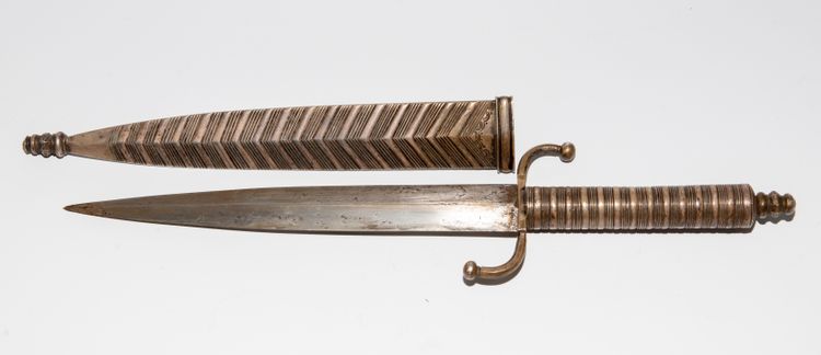 a well-proportioned european dagger with a steel blade and an elegant silver-mounted hilt, featuring decorative engraving and refined craftsmanship