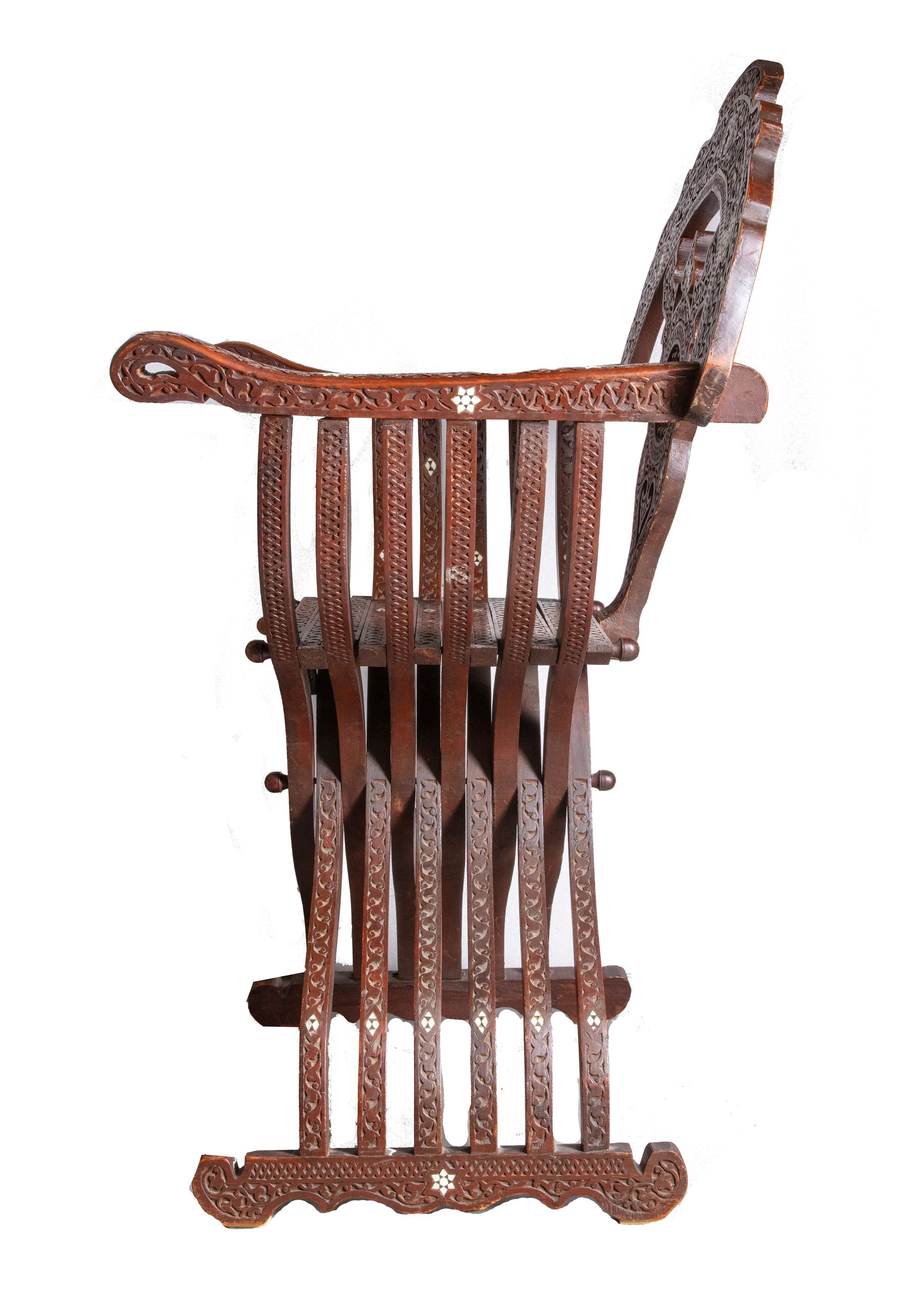Lot 292A SYRIAN MOTHER-OF-PEARL INLAID SAVONAROLA CHAIR , 20TH CENTURY