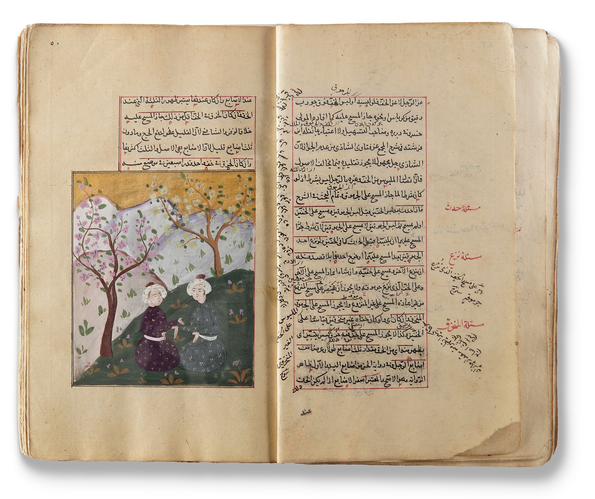 كتاب المُصَلِّي: رسالة حنفية في الطهارة والصلاة لإبراهيم الحلبي، تركيا العثمانية، القرن الثامن عشر مخطوطة عربية على الورق، تحتوي كل صفحة على 19 سطرًا مكتوبة بخط النسخ الأسود المتقن، مع إحاطة النص بإطارات حمراء محددة. العناوين والكلمات المفتاحية مكتوبة بالحبر الأحمر، بينما تظهر هوامش التعليقات والشروح بين الحين والآخر. بعض المقاطع مختارة ومسطرة باللون الأحمر. الصفحة الافتتاحية مزخرفة بالذهب والأزرق، وتحتوي المخطوطة على ثلاث مصورات وأربع لوحات جانبية نُفذت بألوان غامقة مع تعزيز الذهب. الكتابة مجلدة بجلد بني غامق. الأبعاد: 10 × 17 سم. هذا العمل هو خلاصة كتاب الإمام الكاشغري منية المصلي (توفي 505 هـ)، مجمعة بواسطة الإمام إبراهيم. في هذا النص، يتناول مسائل عديدة تتعلق بالطهارة والصلاة بأسلوب يسهل فهمه، ويوضح نقاط الاختلاف، ويوازن بين الآراء المختلفة، ويبرز الأدلة المؤيدة لكل رأي. يُعد كتاب المصلي، وهو مختصر لكتاب غنية المتأمل في شرح منية المصلي، مساهمة هامة في التقليد الفقهي الحنفي، سواء من حيث المبادئ الأساسية أو الأحكام التفصيلية. يقدم معالجة شاملة لمسائل الطهارة والصلاة وقد استُشهد به على نطاق واسع. ويُعترف به كعمل عقائدي يحتل مكانة مرموقة بين كبار العلماء الحنفيين، من بينهم ابن نجيم، وابن عابدين، والشورنبلي. كل فصل وقسم غني بالمسائل والأحكام الفرعية، مع مناقشات مستفيضة على امتداد النص. في شرحه، يستند الإمام إبراهيم إلى المصادر الحنفية الأساسية، بما في ذلك المبسوط، والأصل، والمحيط، والفوائد الخانية، وغيرها. كما يدعم عمله بأدلة واسعة من القرآن الكريم والسنة النبوية والنصوص الموثوقة الأخرى. يُقدَّر المؤلف لتأنّيه في ترجيح المسائل الفقهية، رغم أن بعض استنتاجاته تختلف أحيانًا عن آراء الكاشغري. المؤلف: إبراهيم الحلبي (حوالي 1460–1549) كان فقيهًا إسلاميًا بارزًا وُلد في حلب، التي كانت آنذاك جزءًا من سلطنة المماليك. درس في حلب ودمشق قبل أن يكمل تعليمه في القاهرة، على الأرجح في جامعة الأزهر، حيث تتلمذ على يد العالم المعروف جلال الدين السيوطي. حوالي عام 1500، انتقل إلى إسطنبول، عاصمة الدولة العثمانية، حيث أصبح إمامًا وخطيبًا ومعلمًا في مساجد ومؤسسات رئيسية، بما في ذلك مسجد الفاتح ودار القراء. يشتهر الحلبي بعمله الفقهي ملتقى الأبْحُر، الذي أصبح مرجعًا قياسيًا للمذهب الحنفي في الدولة العثمانية. ومن أعماله المهمة الأخرى: غنية المتأمل، ومختصر الطتارخاني، ومختصر الجواهر المضيئة، وغيرها. وقد عُرف في القرون اللاحقة كأحد أبرز الفقهاء في عصره. توفي في إسطنبول عام 1549 عن عمر يناهز تسعين عامًا تقريبًا، ودُفن في منطقة إدرنكابي