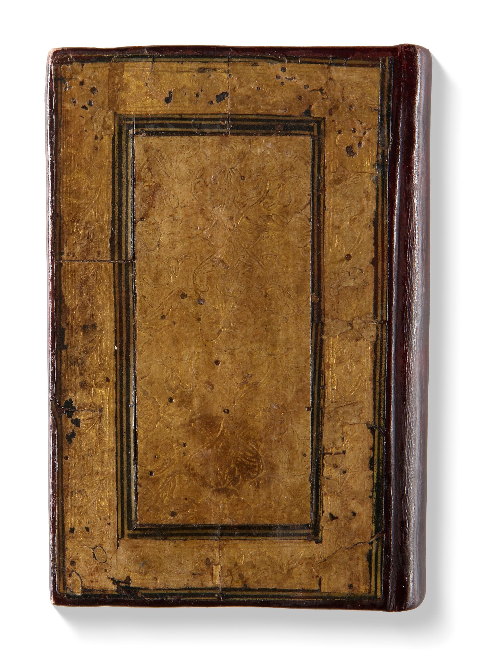 In a contemporary brown morocco binding, decorated with gold-painted floral motifs, worn.