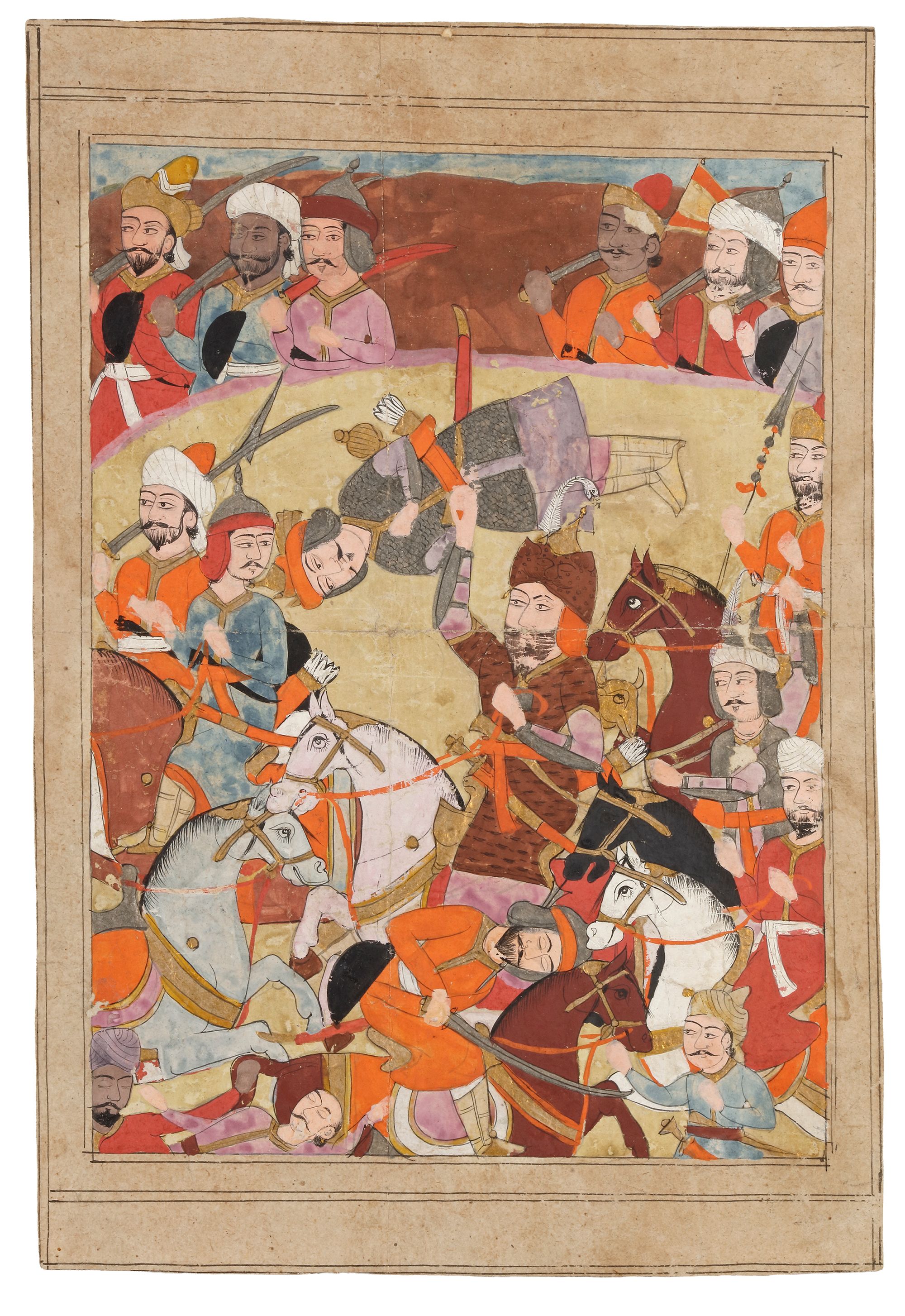 Lot 220TWO MINIATURES DEPICTING DRAMATIC BATTLE SCENES, QAJAR, 19TH CENTURY