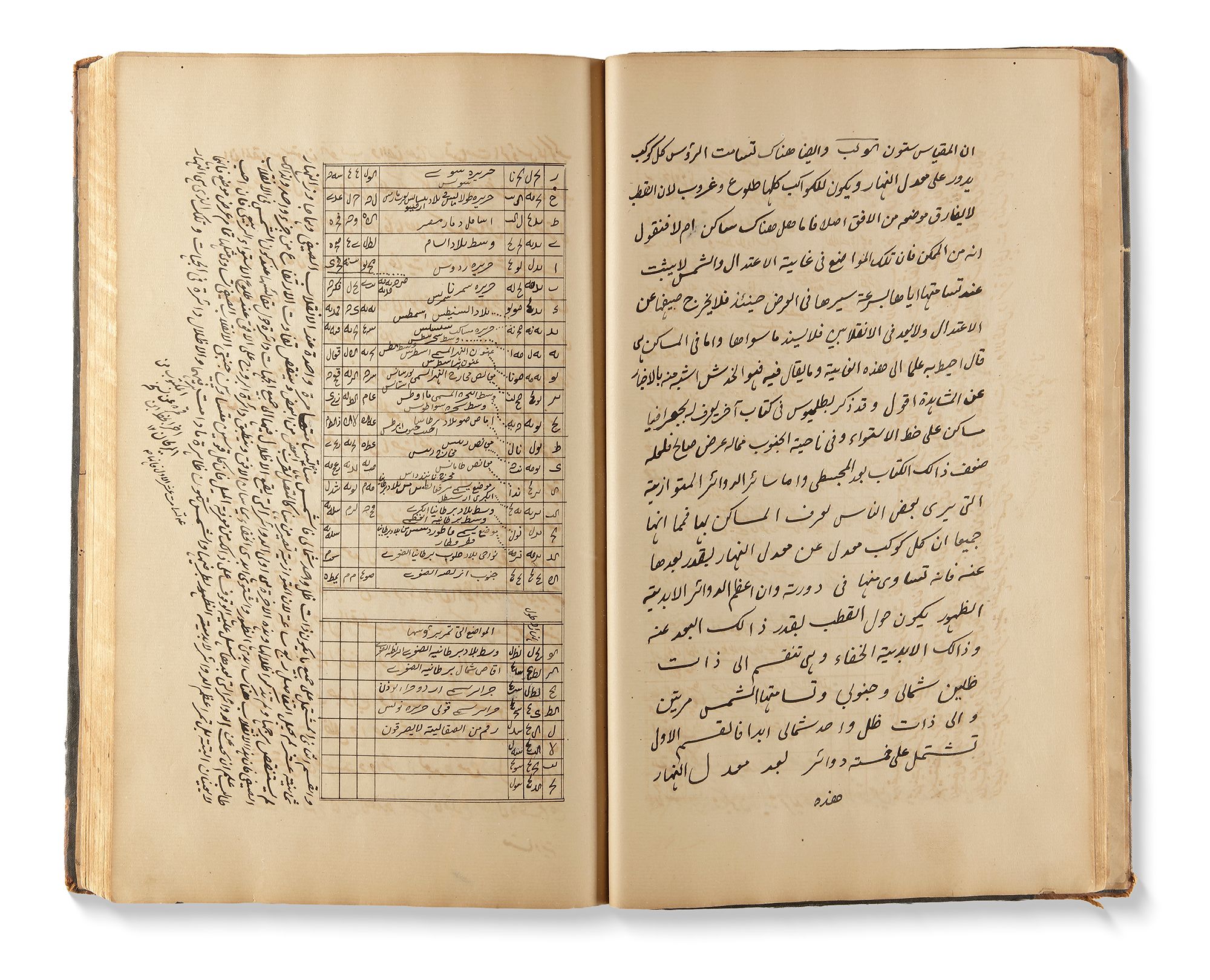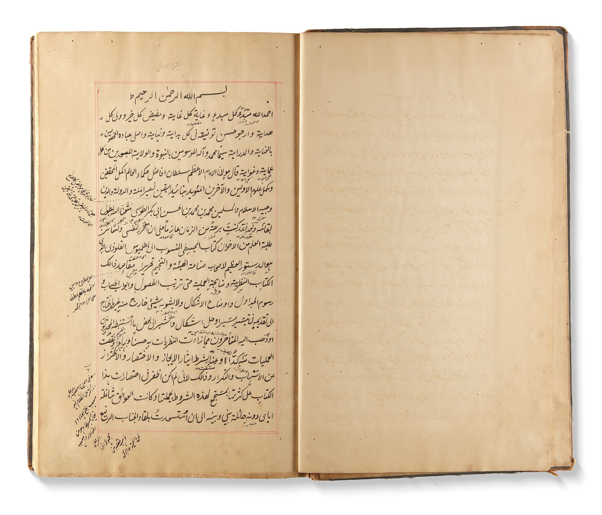 تحرير المجسطي: مخطوطة فلكية عربية على نهج الطوسي، القرن الثامن عشر–التاسع عشر مخطوطة عربية على الورق، في كل صفحة 19 سطرًا مكتوبة بخط نسخي واضح بالمداد الأسود، مزودة بعدد كبير من الأشكال الهندسية والرسوم البيانية والجداول؛ الأبعاد: 21 × 35 سم. تُعد هذه النسخة من تحرير المجسطي مخطوطة ذات طموح فكري لافت ووضوح بصري متميز، إذ تجسّد التلاقي بين الصرامة العلمية والانضباط الجمالي الذي يميز تقاليد المخطوطات العربية. ألّفها نصير الدين الطوسي (1201–1274)، وتمثل صياغة محققة لكتاب المجسطي لبطليموس، النص التأسيسي لعلم الفلك القائم على مركزية الأرض. ولا يقتصر عمل الطوسي على الشرح فحسب، بل يتجاوز ذلك إلى إعادة تنظيم حجج بطليموس المعقدة بأسلوب واضح ومنهجي، مع معالجة الإشكالات الموروثة (حلّ الأشكال) ودمج إسهامات الفلكيين اللاحقين. والنتيجة نص تعليمي مبتكر في آن واحد، يوجّه القارئ عبر تعقيدات النظرية الفلكية بدقة واتساق. ومن أبرز سمات هذه المخطوطة برنامجها البصري الغني، حيث تحوّل الرسوم المنفذة بعناية النماذج الفلكية المجردة إلى أشكال هندسية أنيقة، مؤكدة العلاقة الوثيقة بين الفكر العلمي والتعبير الفني. كما يعكس تنسيق الصفحة المتوازن—بخطه المنظم وأشكاله المرتبة—عناية كبيرة بالوضوح والتناغم. ويحتفظ العمل بالبنية الأصلية للمجسطي المؤلفة من ثلاث عشرة مقالة، مع تقسيمات دقيقة إلى فصول، وإرفاقه بمجموعة واسعة من الأشكال التوضيحية، مما يبرز هدفه التعليمي. وهكذا، تجمع هذه المخطوطة بين كونها أداة علمية وعملًا فنيًا، وتشهد على الحيوية المستمرة للتقليد الفلكي الإسلامي والتزامه بالوضوح والنظام والجمال الفكري.