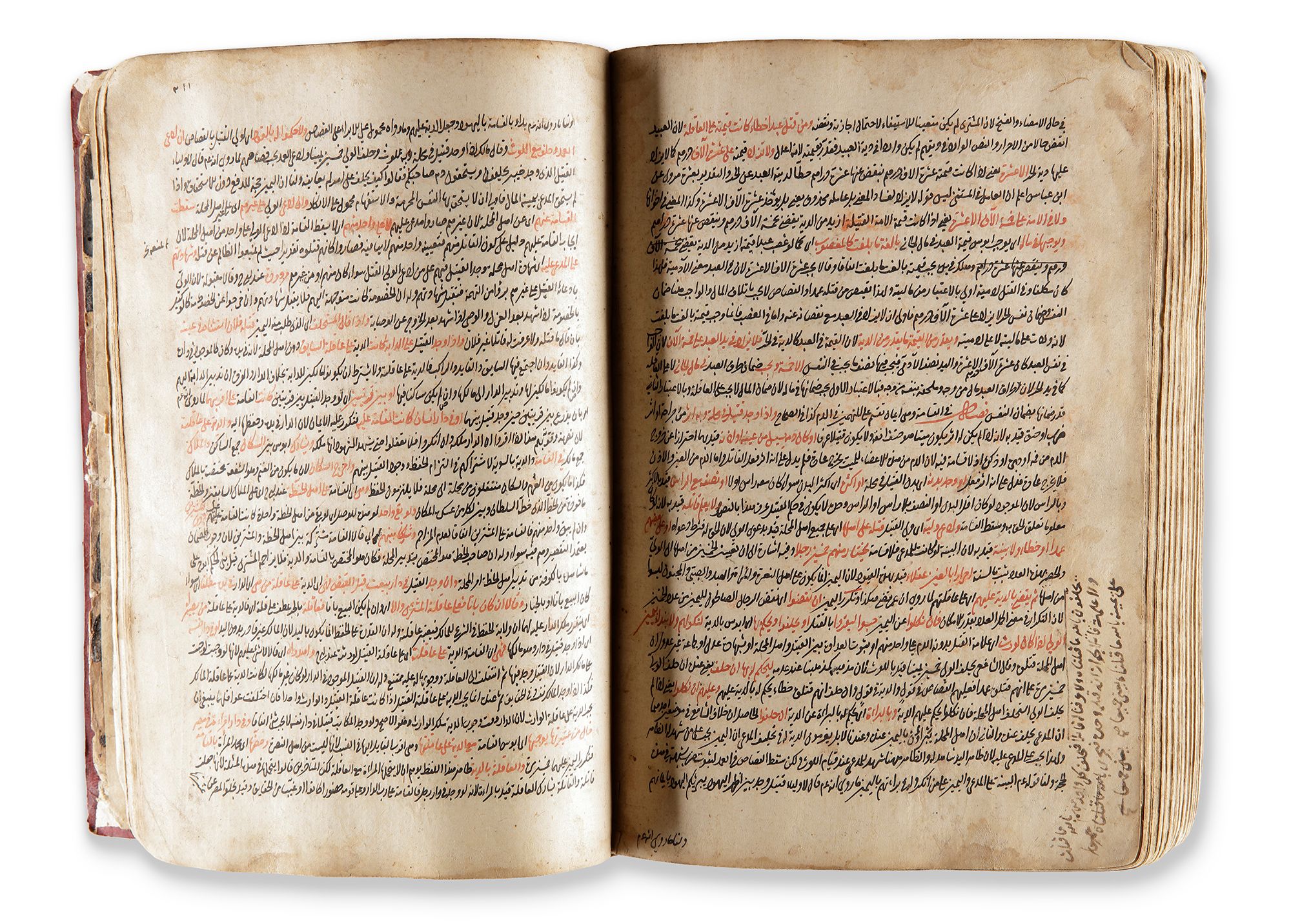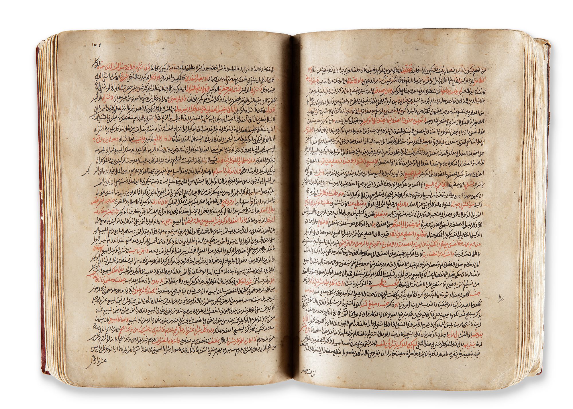 Arabic manuscript on paper, 19 lines to the page written in neat black and red script, catchwords and important words in red, final folio signed “written by Musu b. [undeciphered]” and dated 867 AH / 1462 AD, in a dark leather binding.