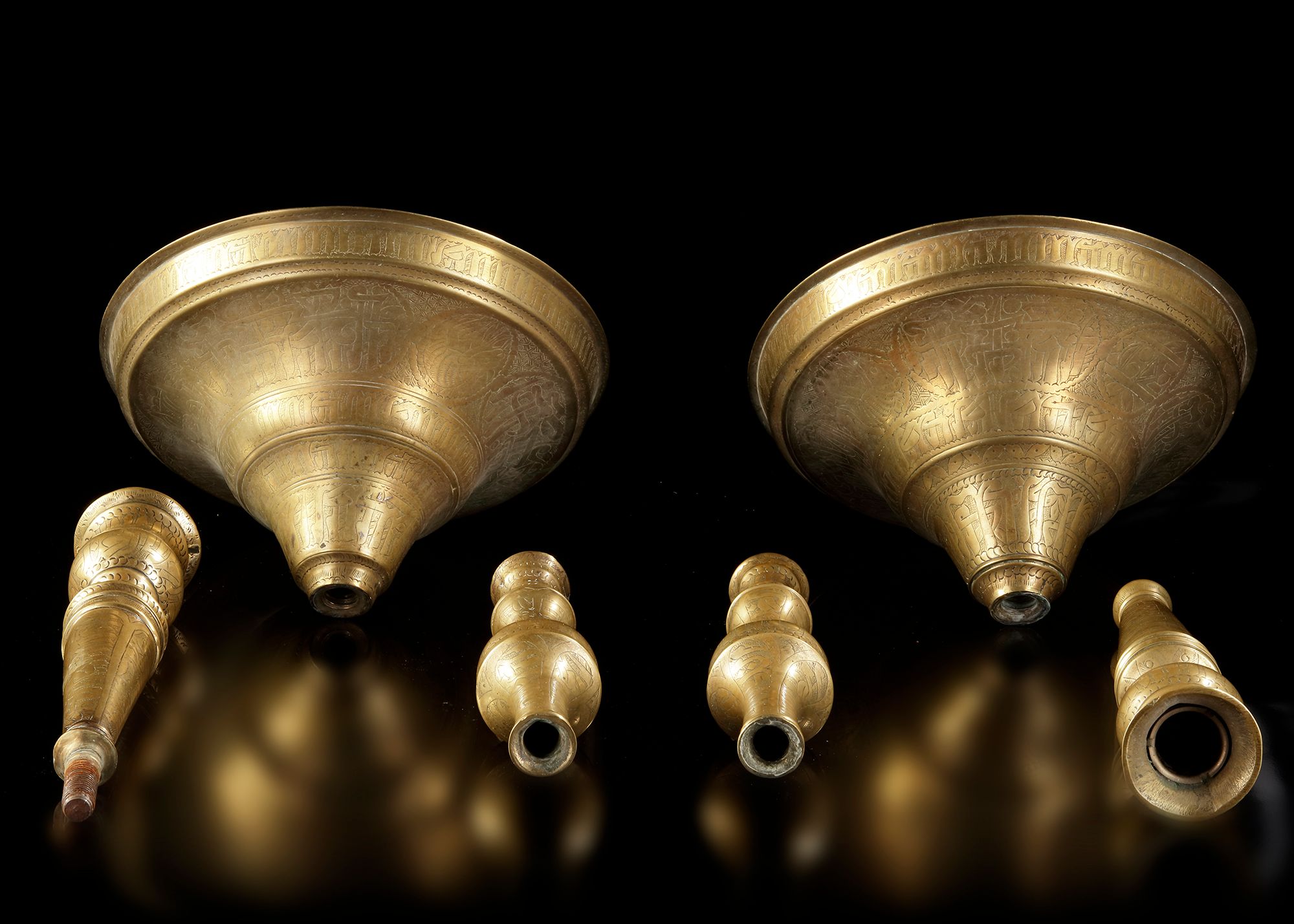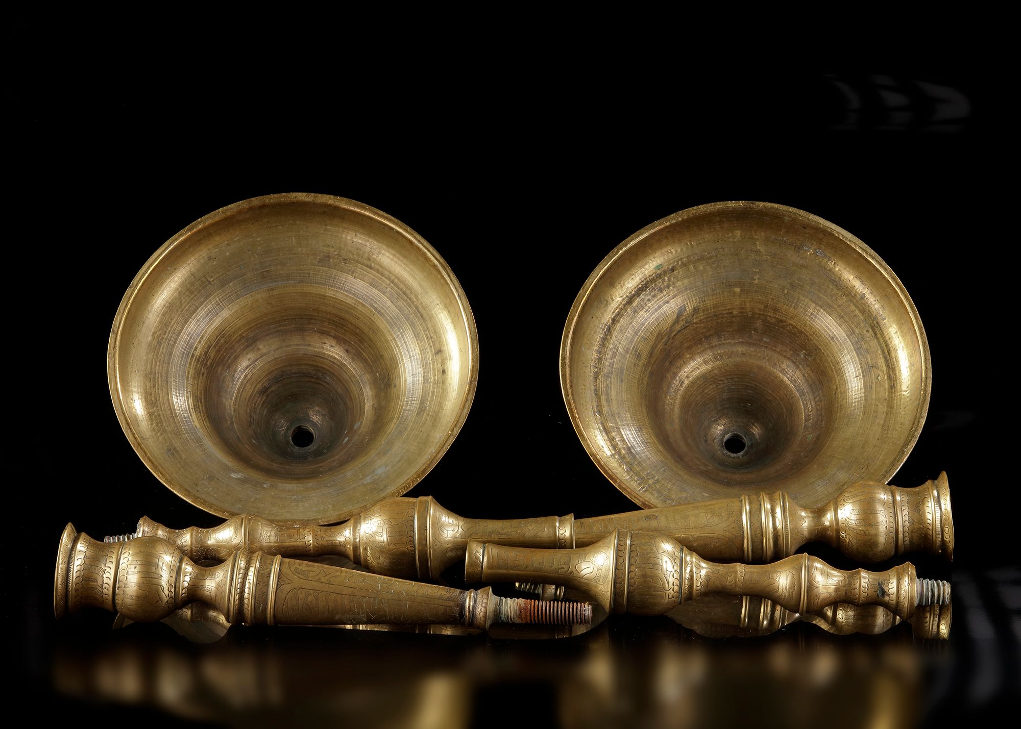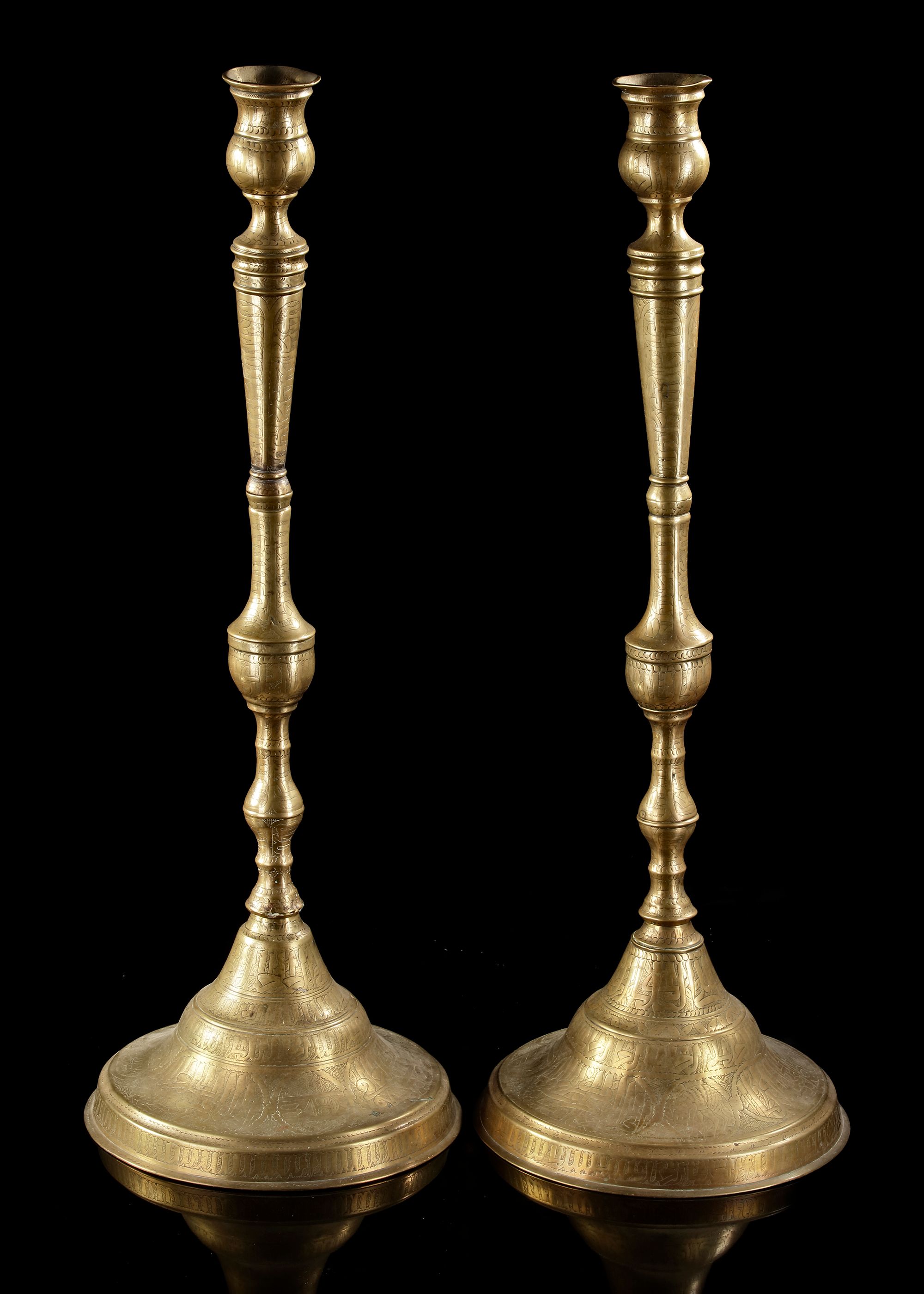 Lot 37A PAIR OF LARGE QAJAR ENGRAVED BRASS CANDLESTICKS, PERSIA, 19TH CENTURY